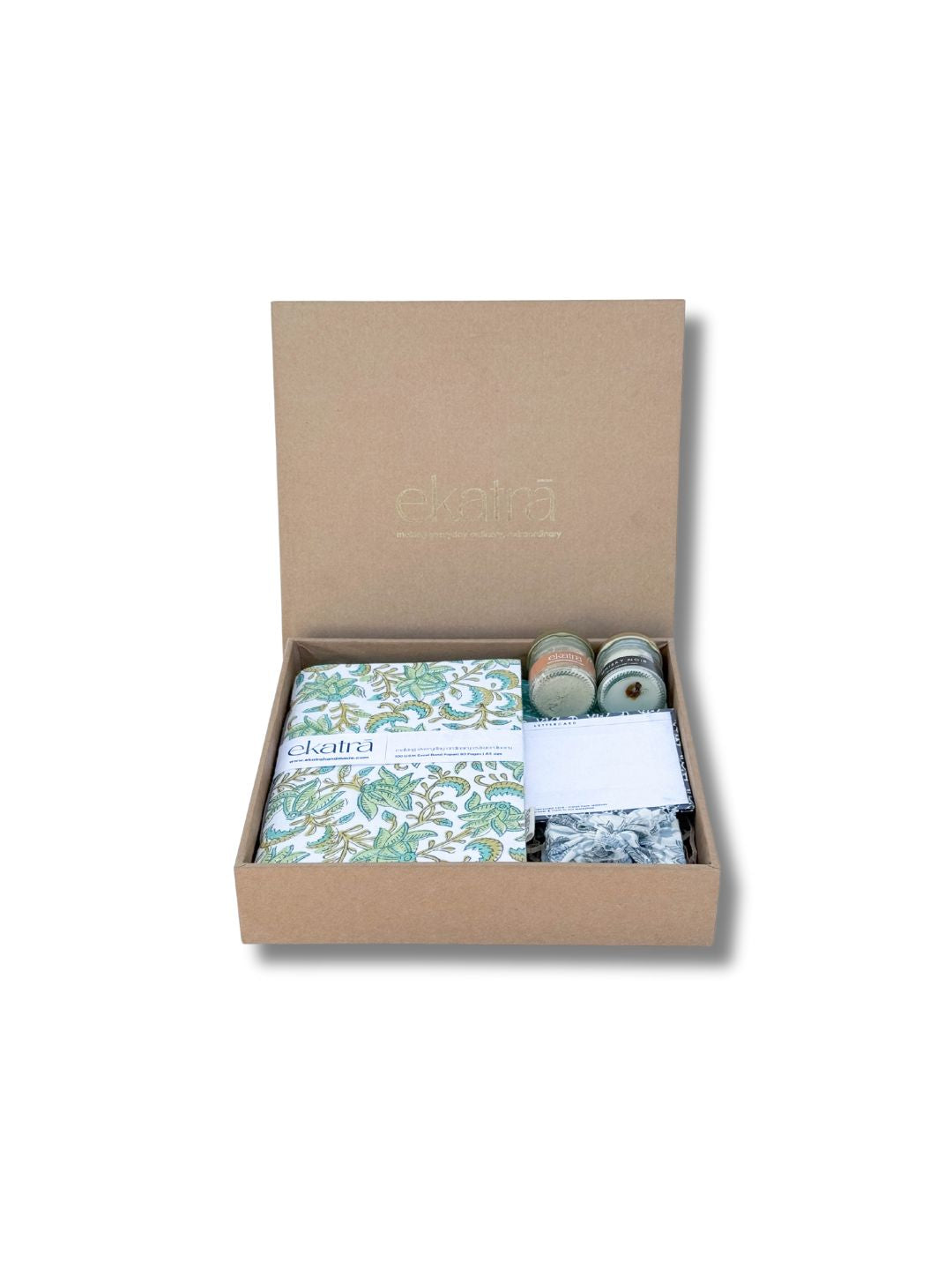 Embrace the fusion of wellness, sustainability, and craftsmanship with the Sustainable Wellness Hamper by Ekatra. Thoughtfully curated to promote holistic well-being, this hamper includes: