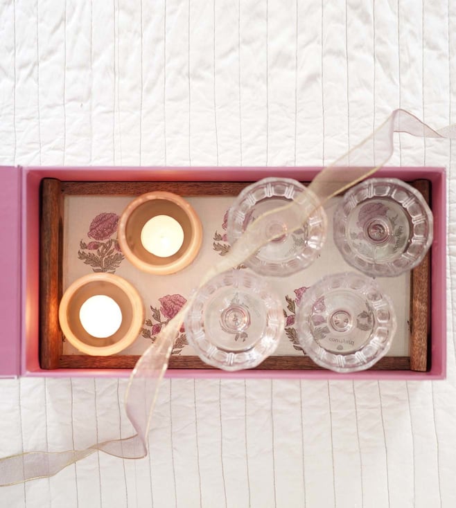 Diwali Wine Hamper with Glasses, Coasters & Candle