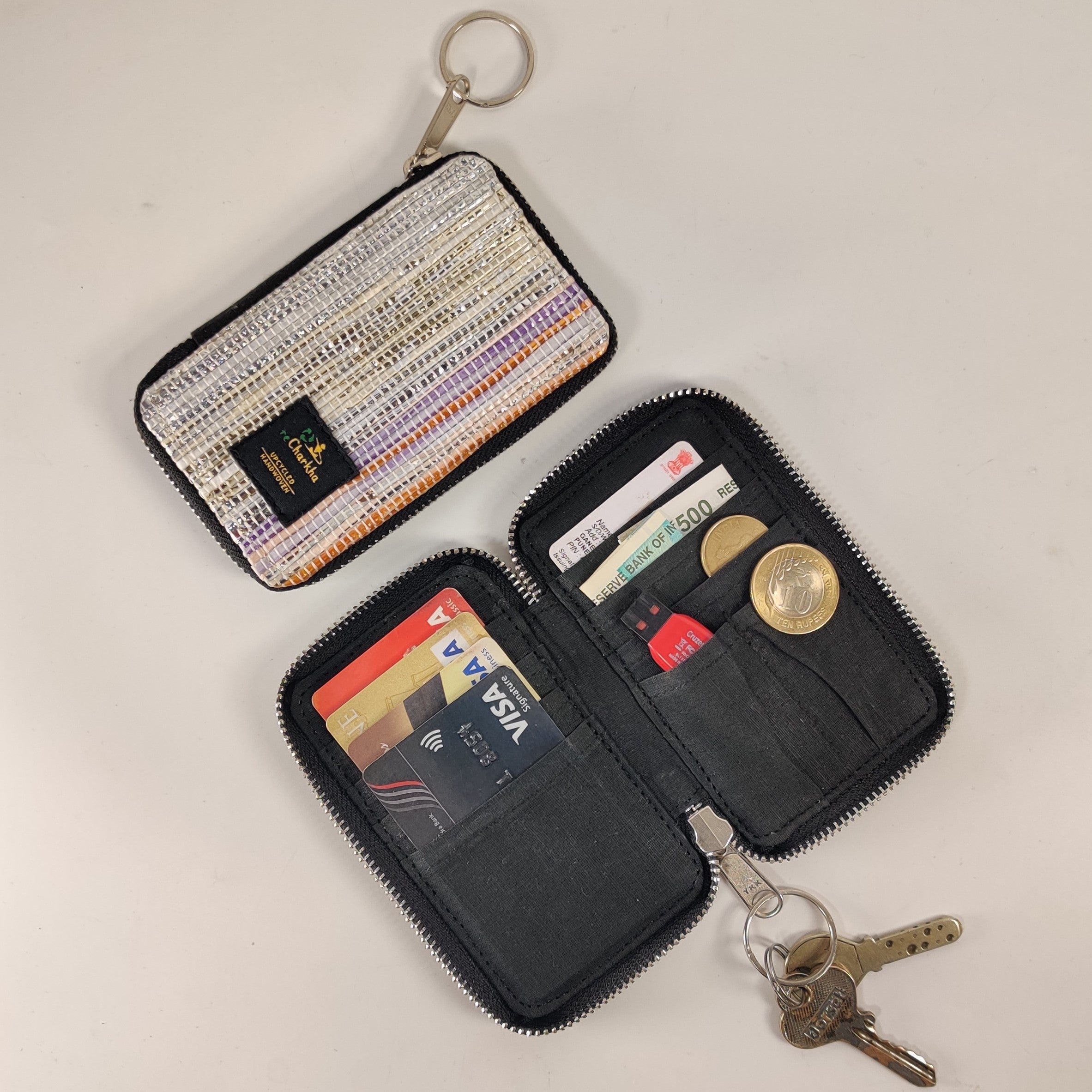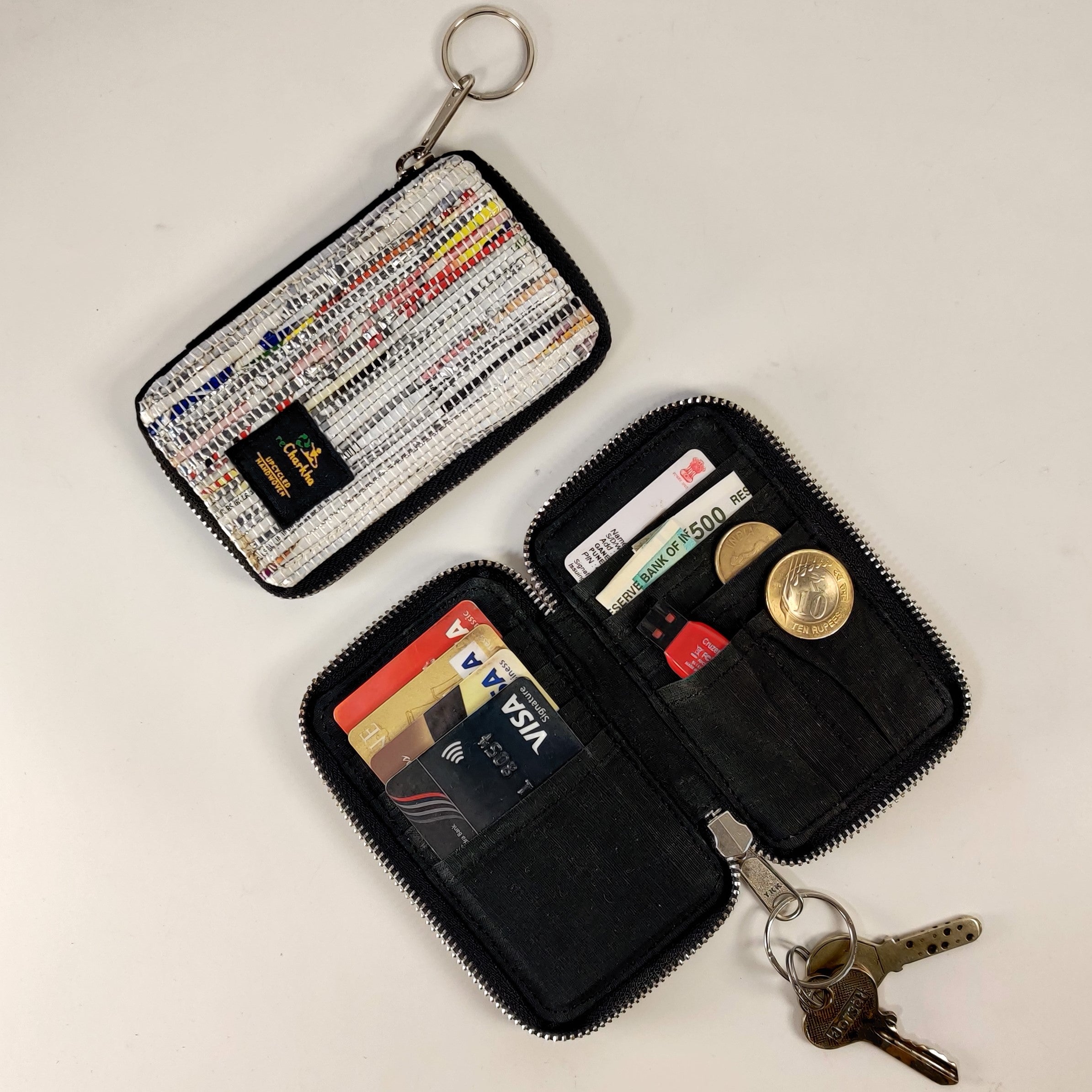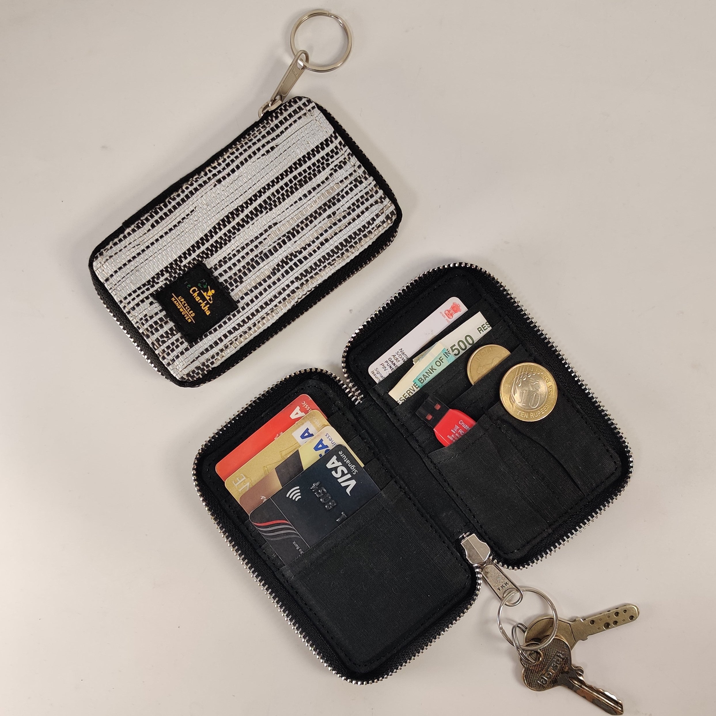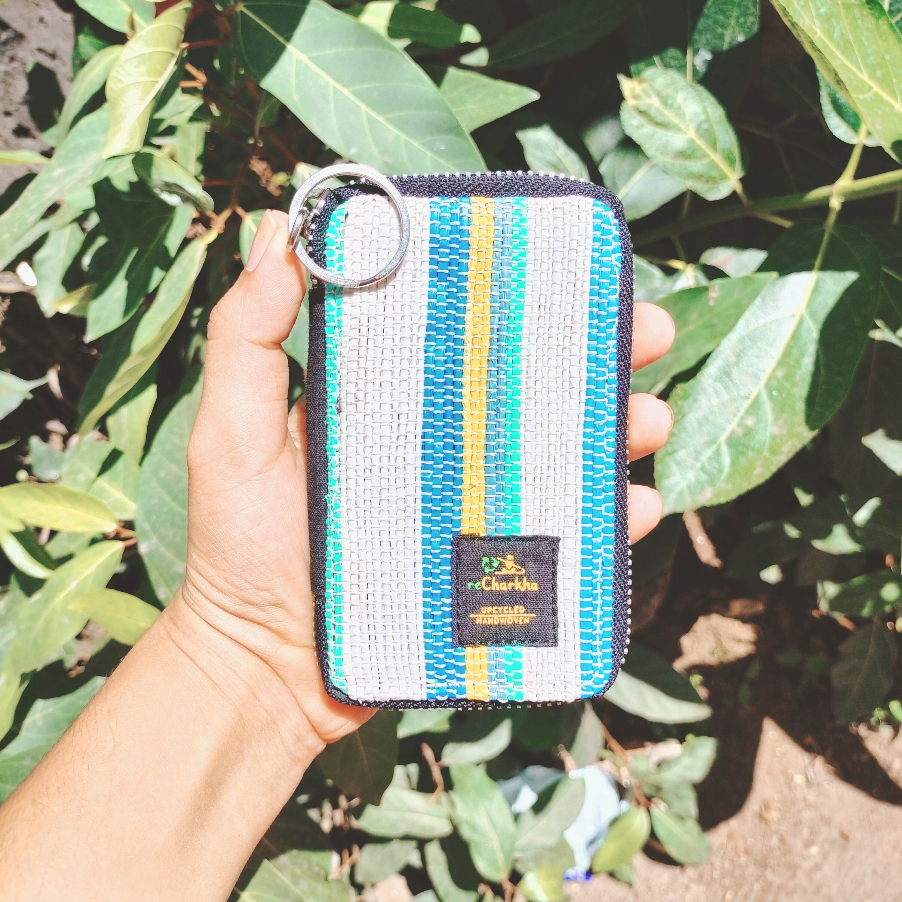 A practical and elegant card holder to store your credit cards, ID cards, a few currency notes, coins and other essential receipts, reCharkha’s UPCYCLED HANDWOVEN Card Holder is a must-have product. With a sleek yet compact design, you can easily hold it in your hand. Being a functional product, it is produced in gender-neutral colours like black, white and even combinations of both!