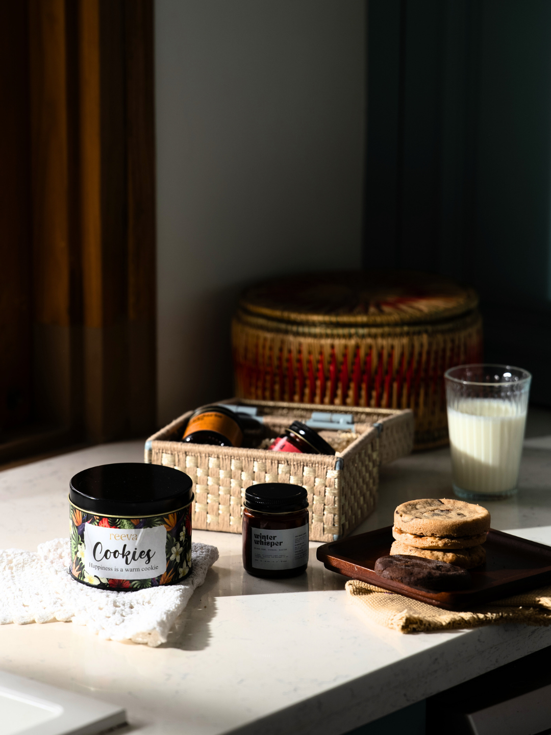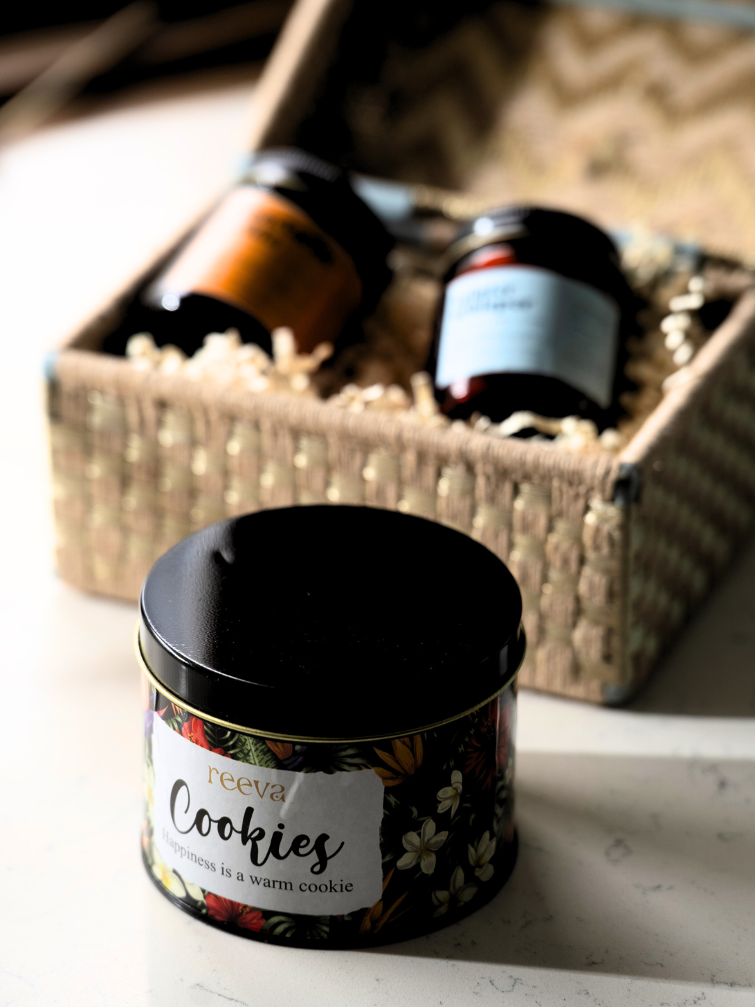 Discover tranquility and indulgence with Ourbetterplanet's Sweet Serenity Gift Box. This charming hamper includes two soy wax candles that fill your space with soothing light and fragrance, alongside a delightful cookie box brimming with treats. All beautifully packaged in a durable jute box, this set is perfect for creating cozy moments or as a thoughtful gift for someone special.