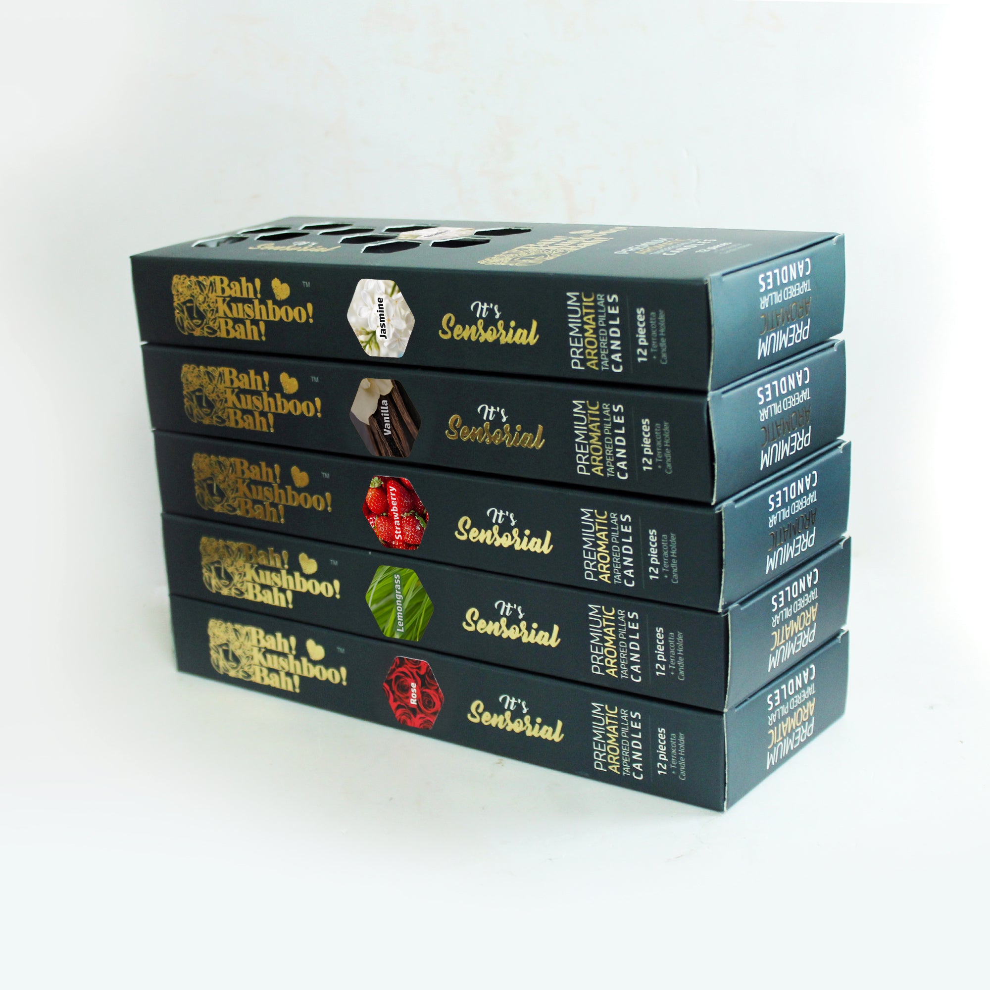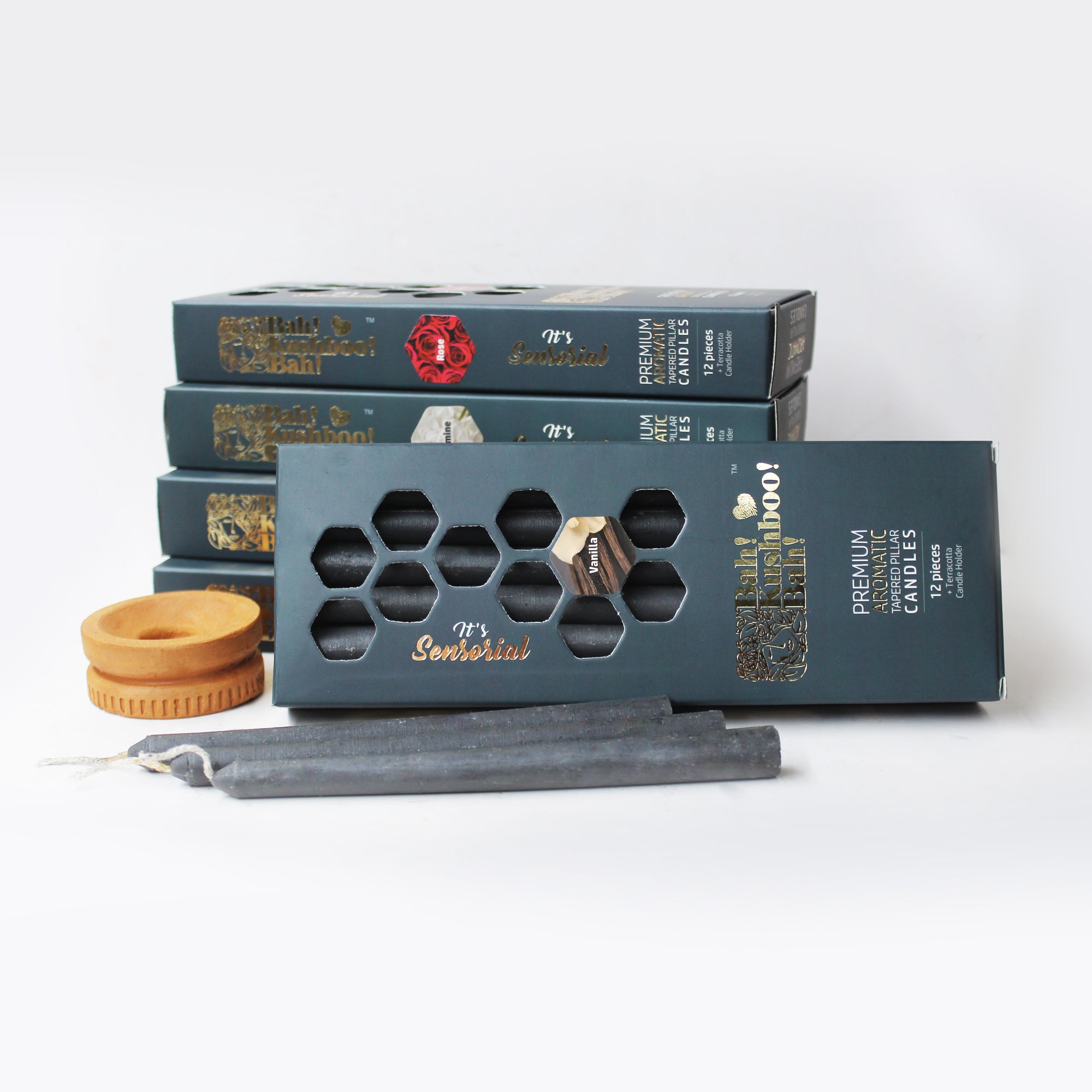 5 VARIETIES Perfumed Premium Candles : 5 boxes (with 1 candle stand inside) x 12 candles (60 candles)