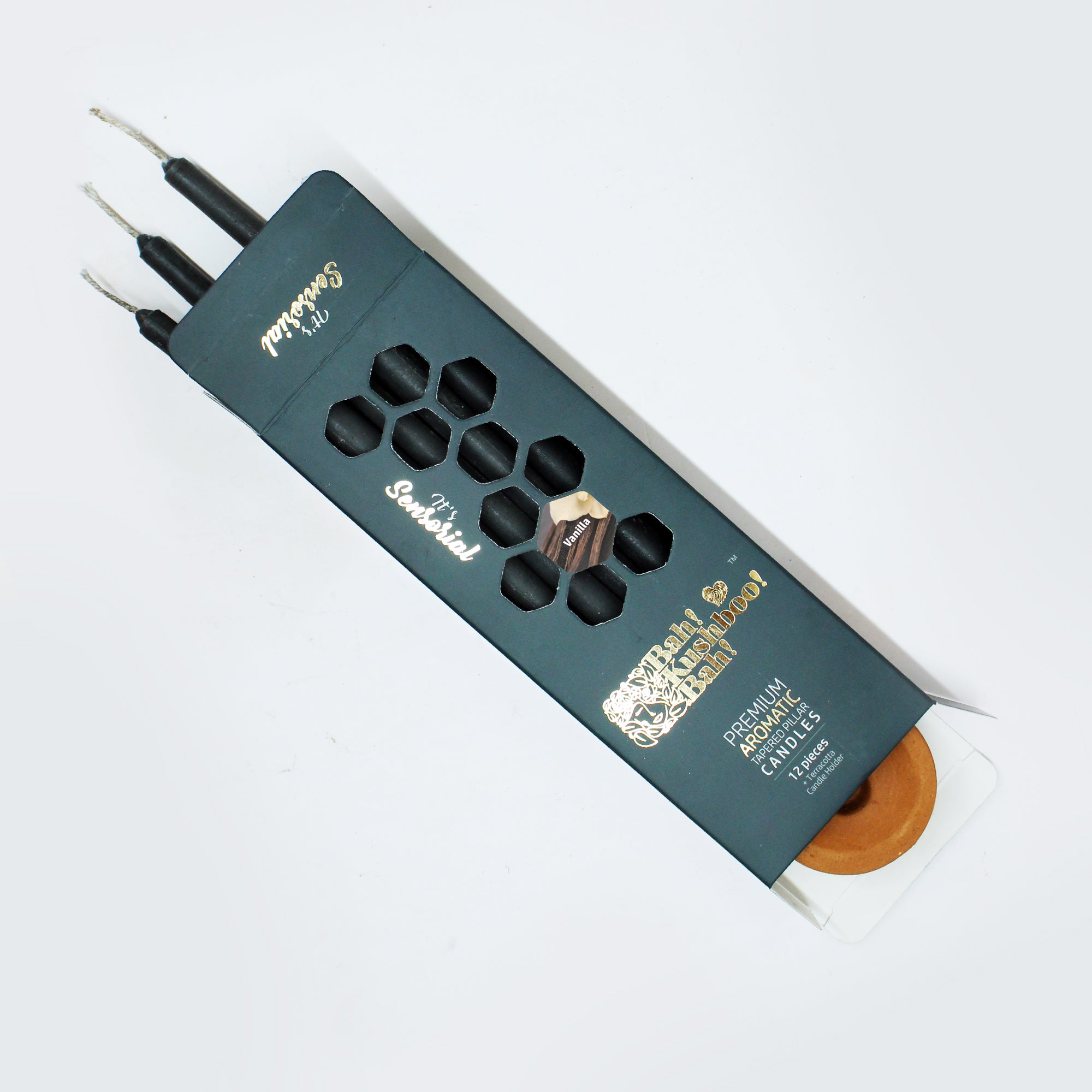 Package contains : total 60 candles (12 pcs/box) + 5 terracotta candle stand (1 piece / box)