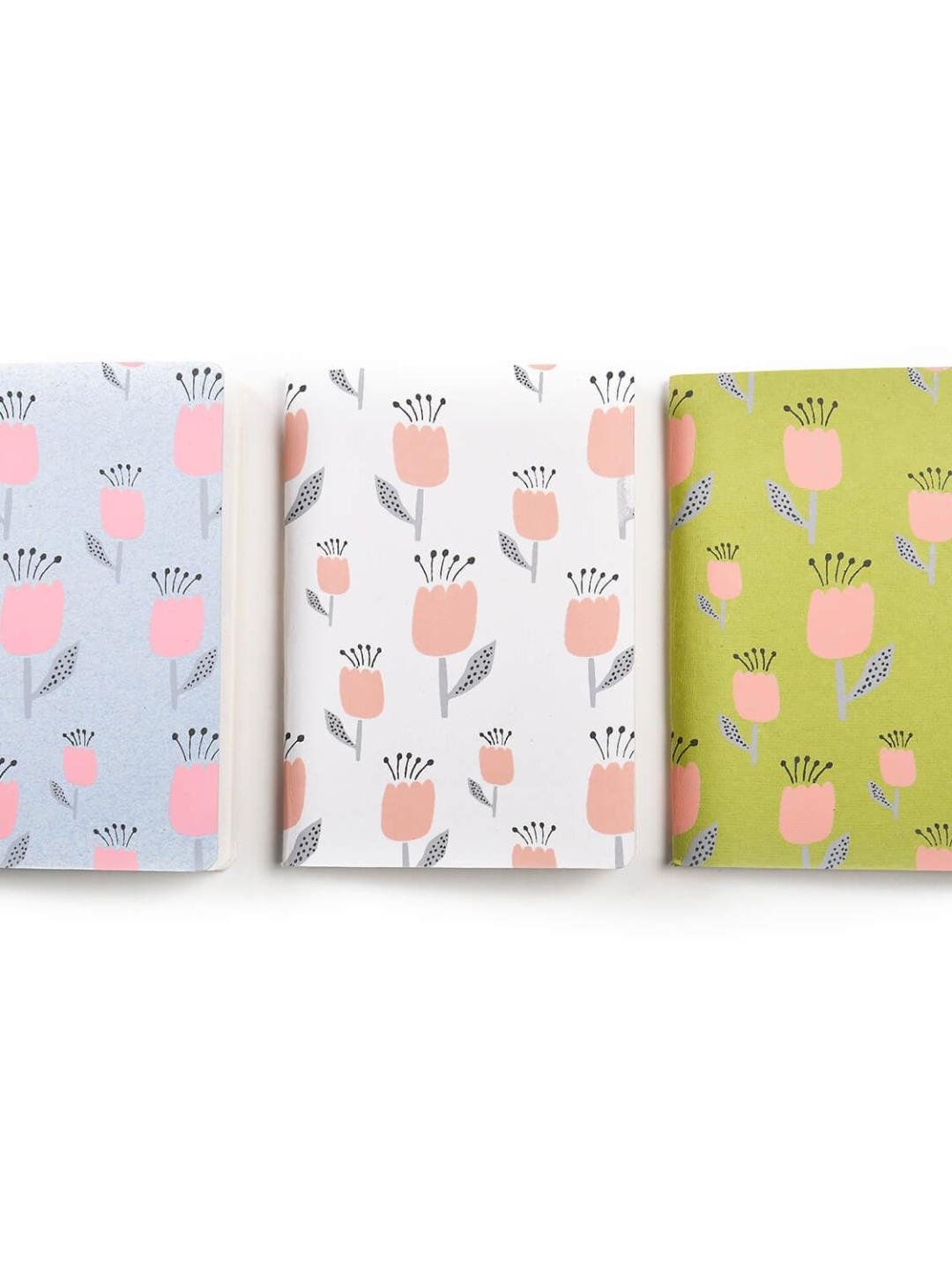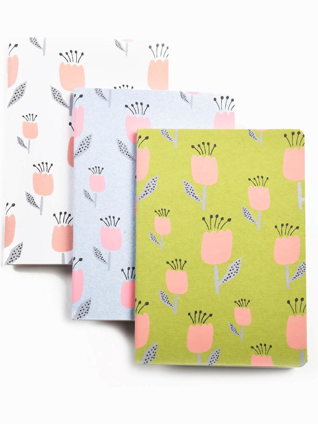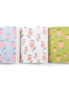 Bluecat Paper Handprinted Stationery – A6 Floral Notebooks (Pack of 3) Handmade Notebooks with Plain, Dots and Grid pages