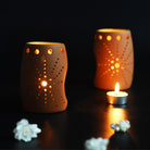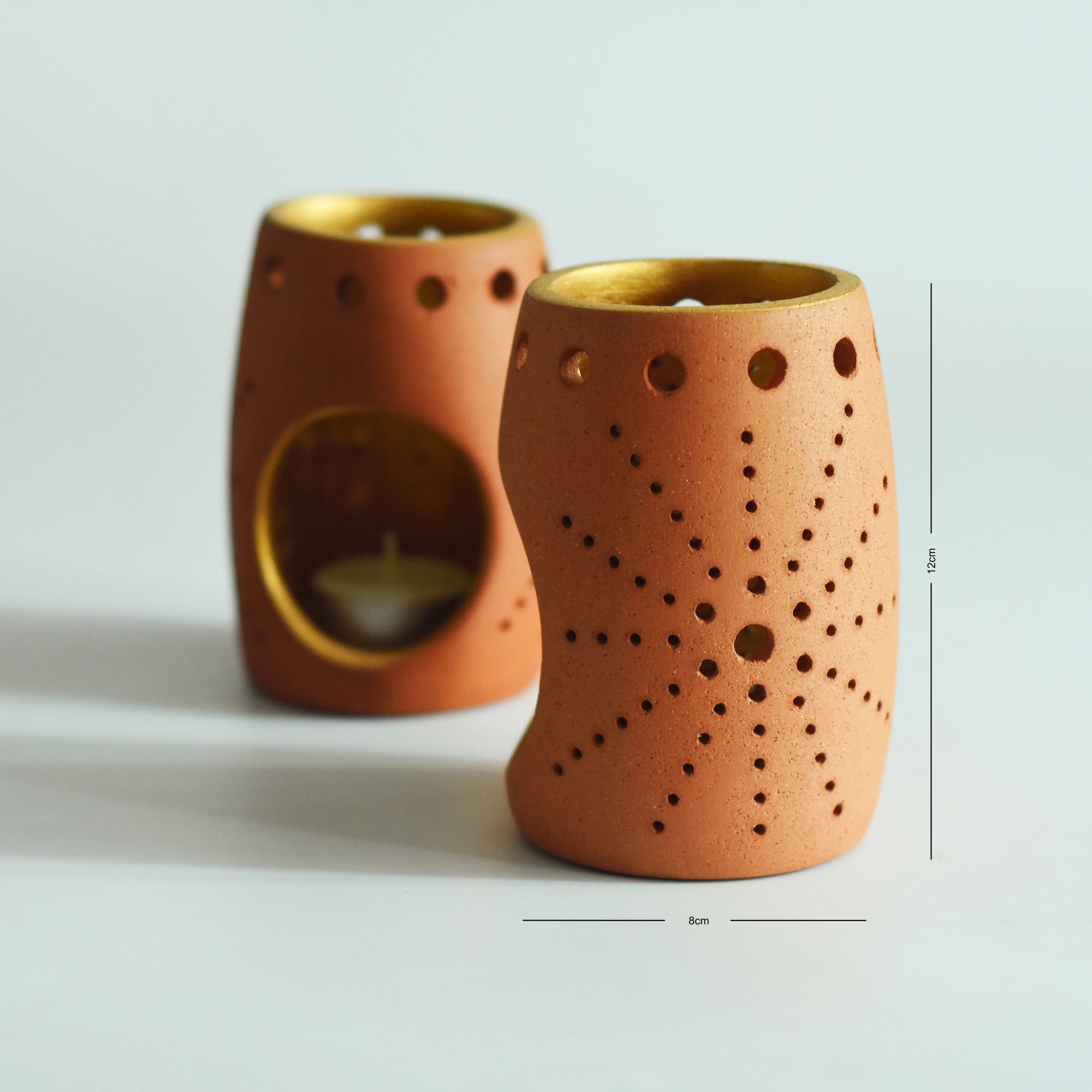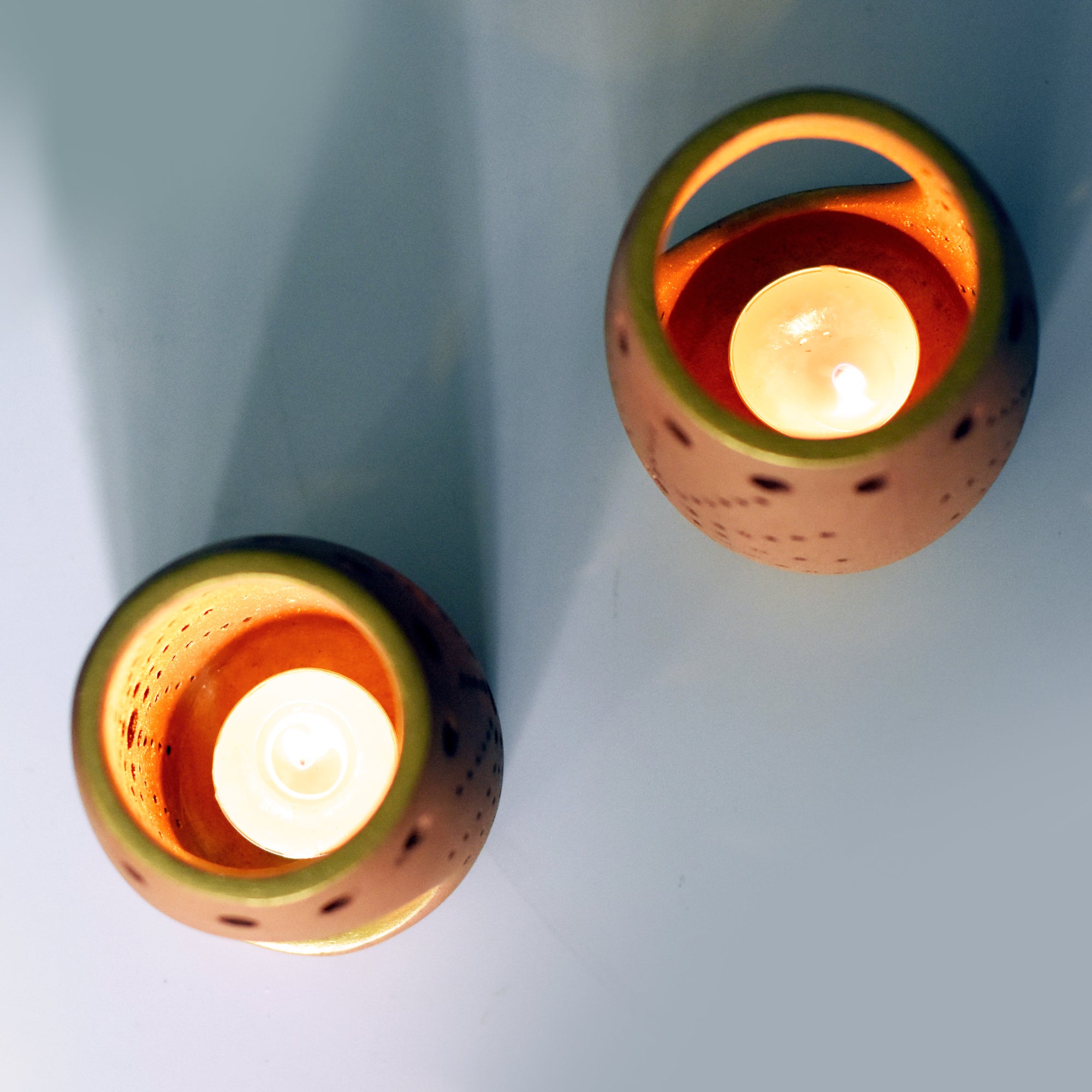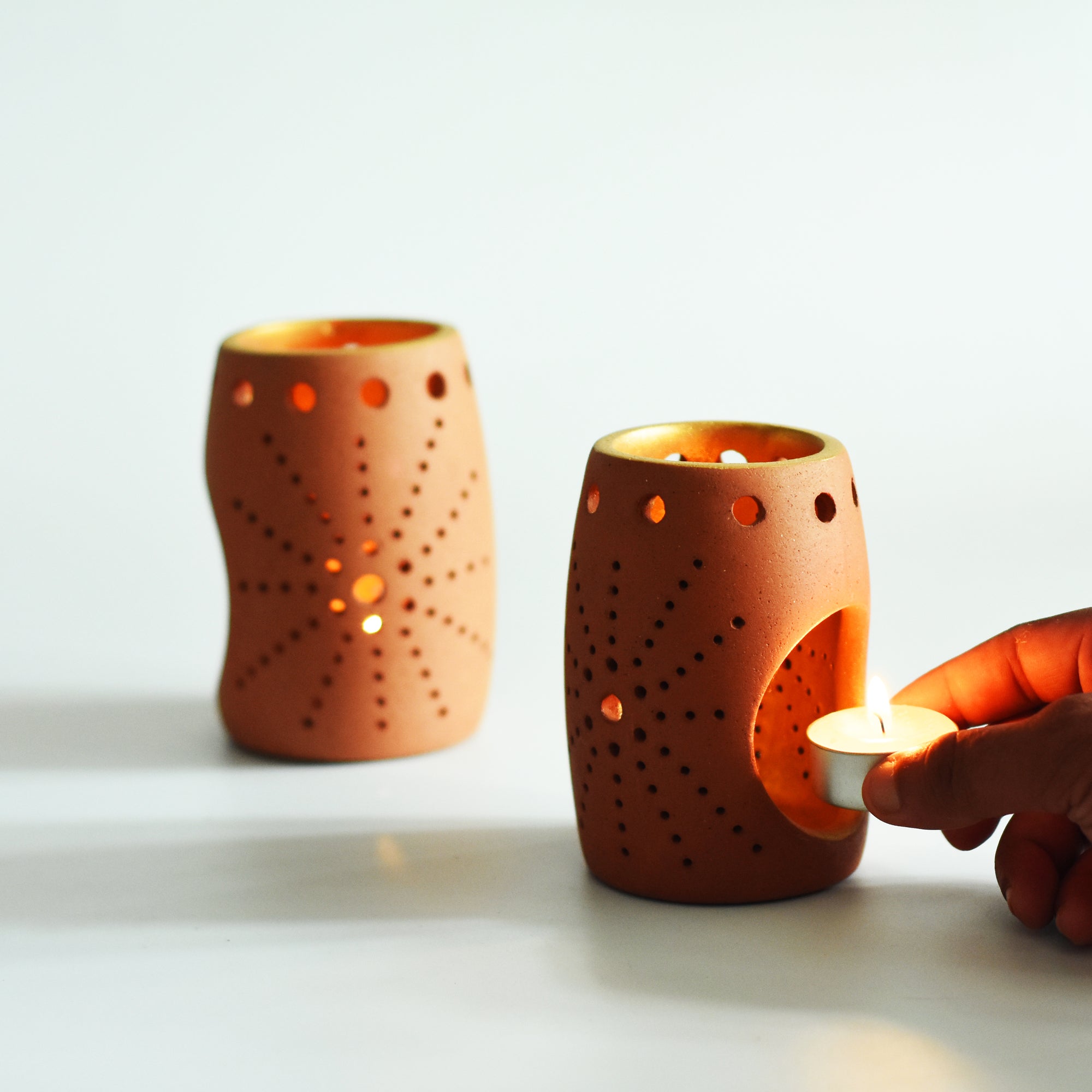Package contains : set of 2 terracotta clay candle holder + 2 complimentary tealight candles