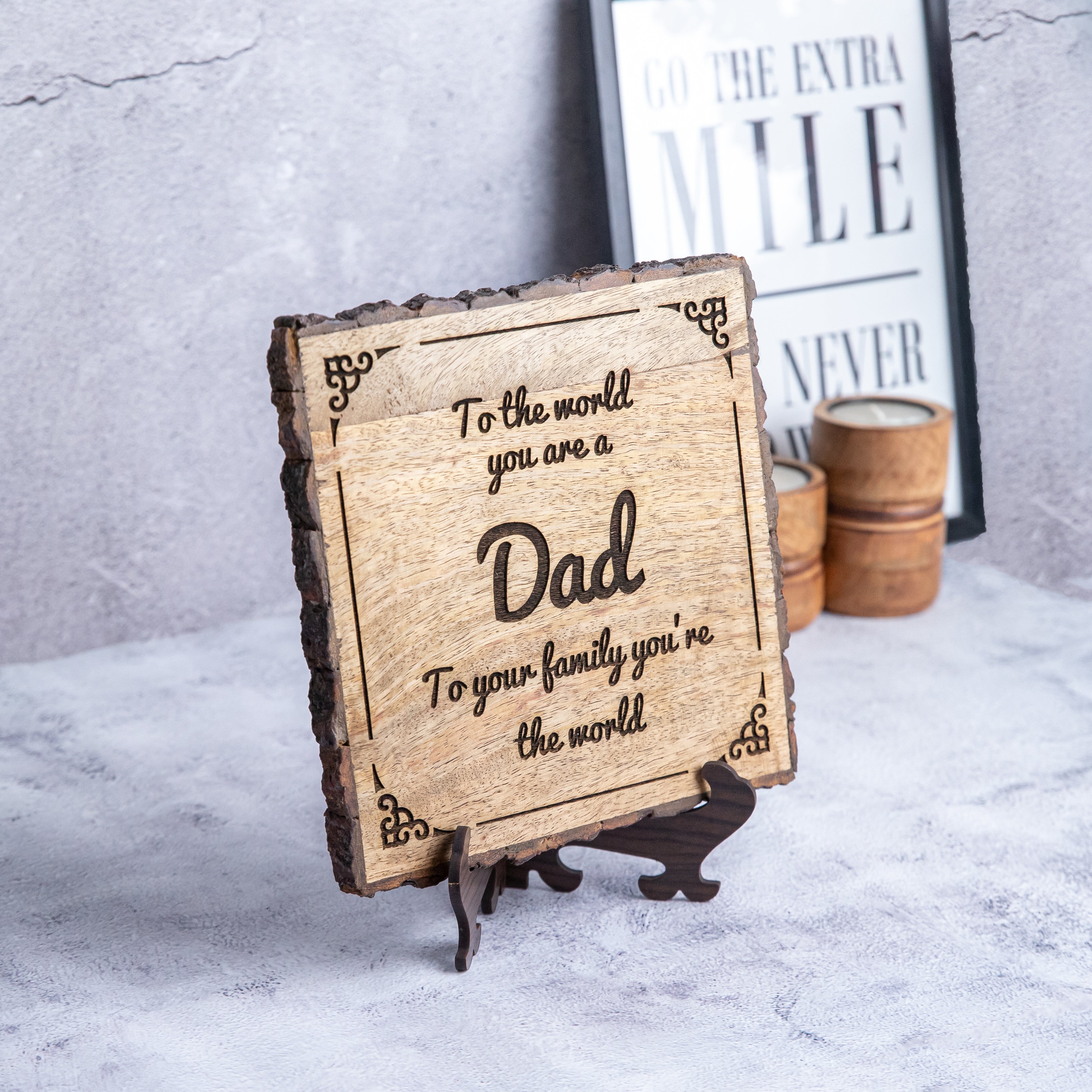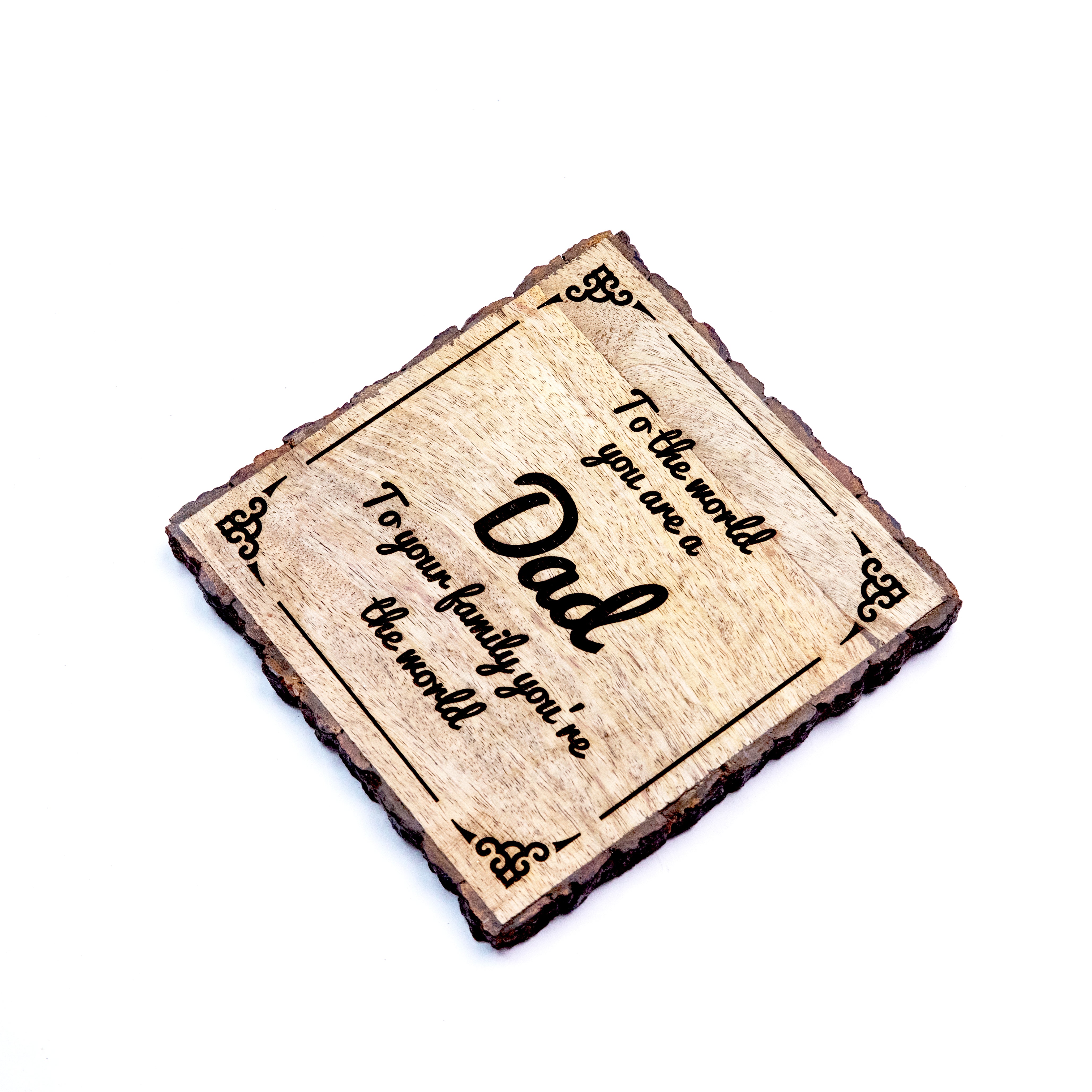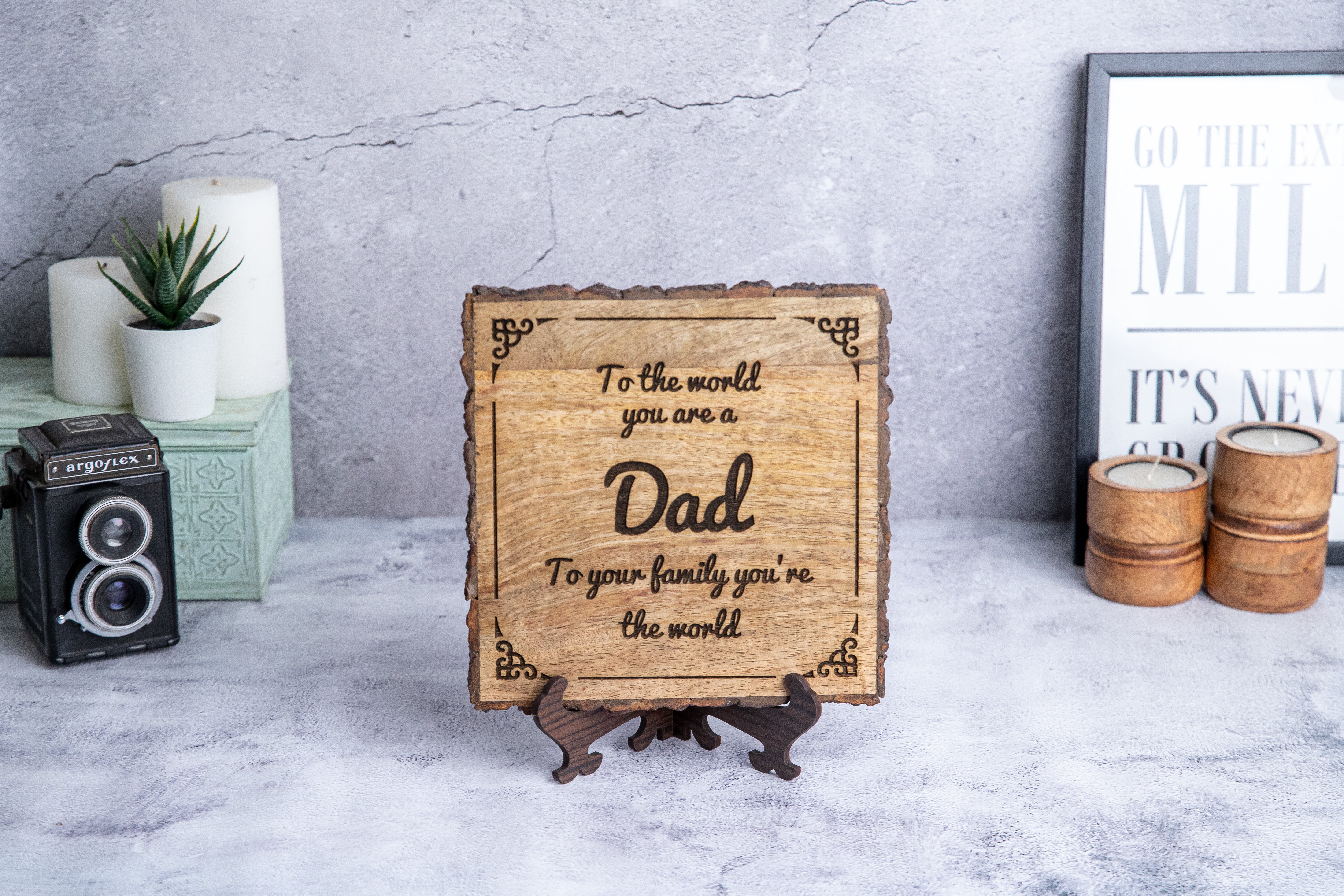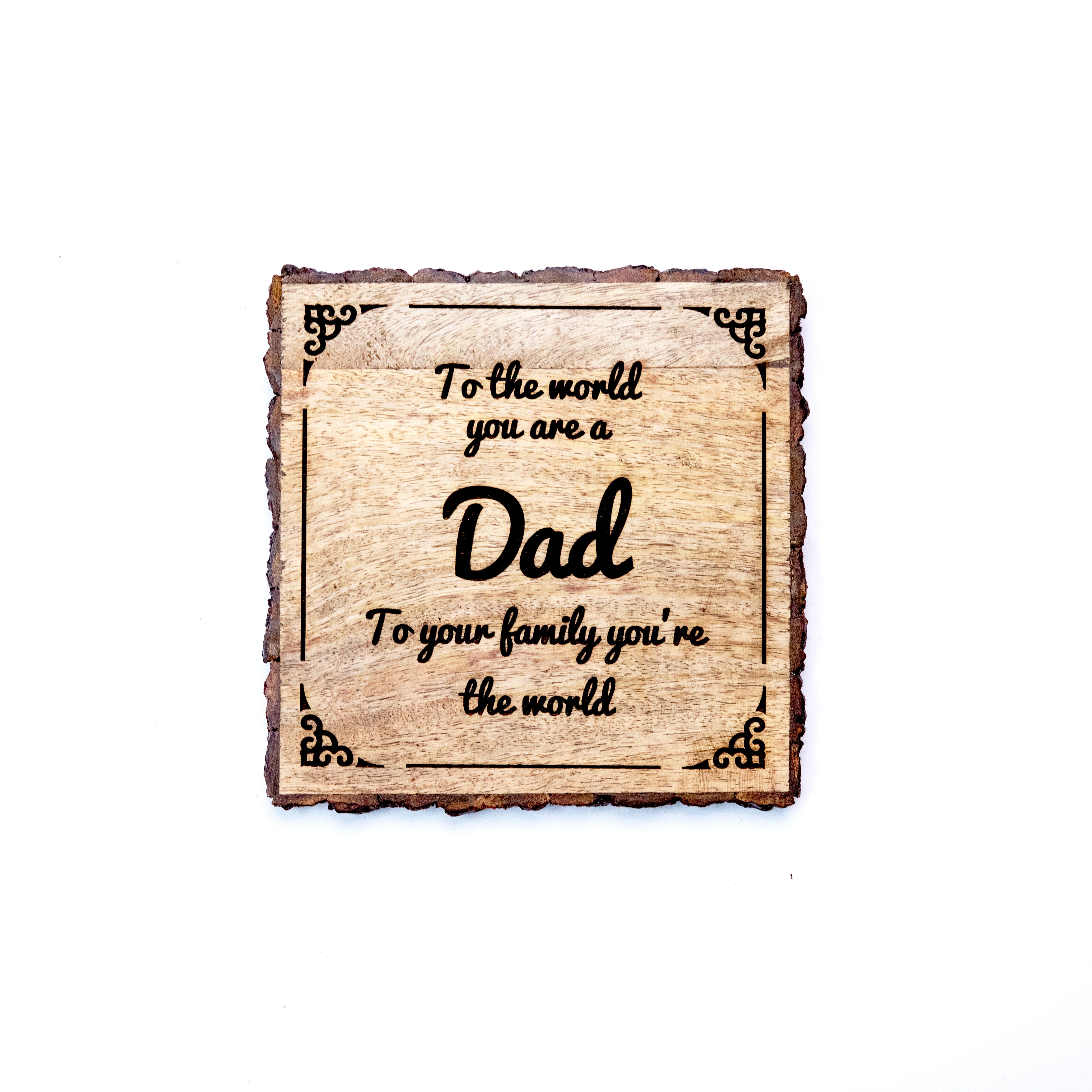 Celebrate your father's special day with a beautiful gift that says it all ! Introducing our Mango Wood Plaque in Natural colour with engraved text. Available in a size 8 x 8 inches. This is perfect for your beloved father ! Comes with a flat pack stand & hook.