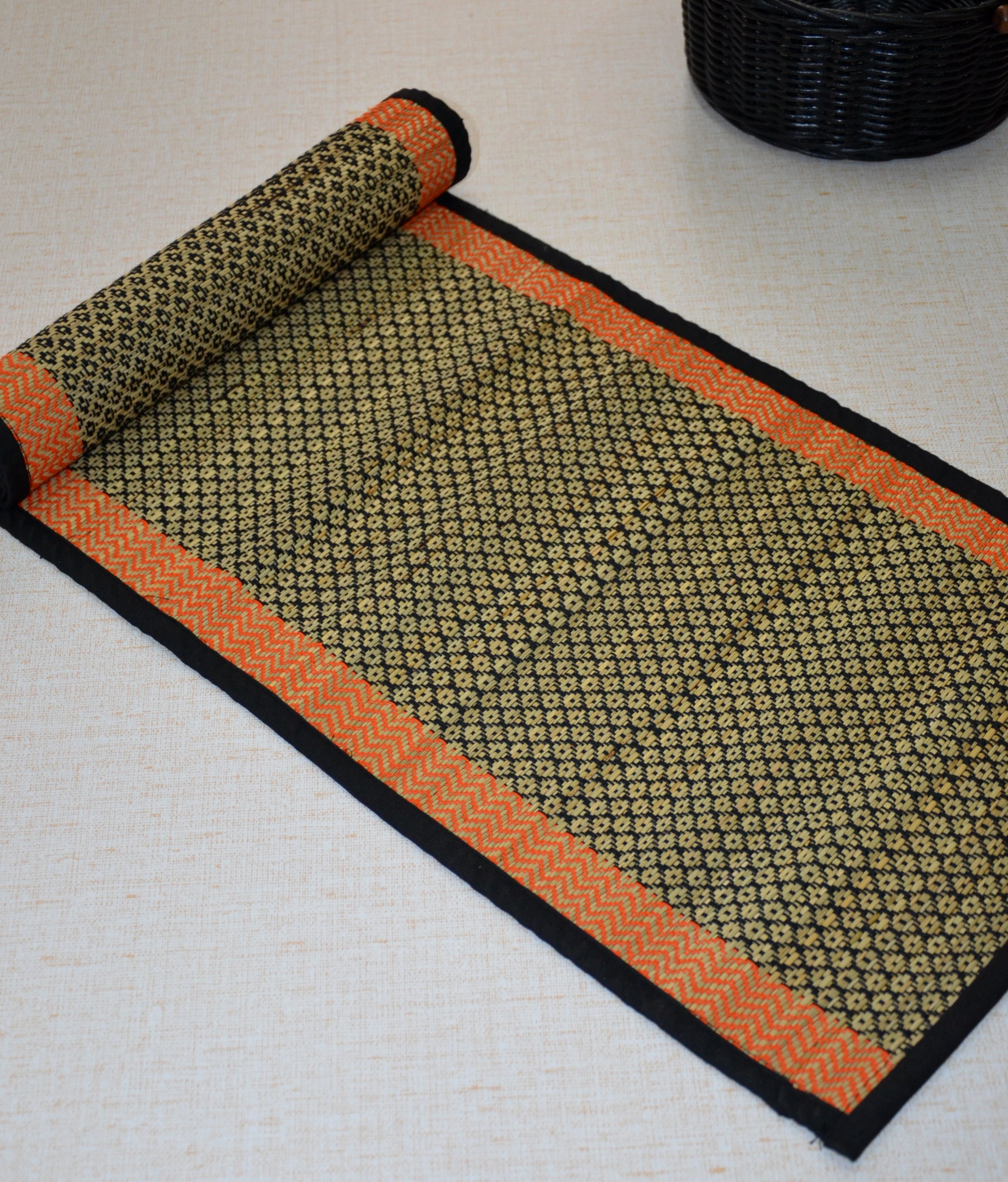 Dharini Madurkathi Diamond Table Runner Black Orange
