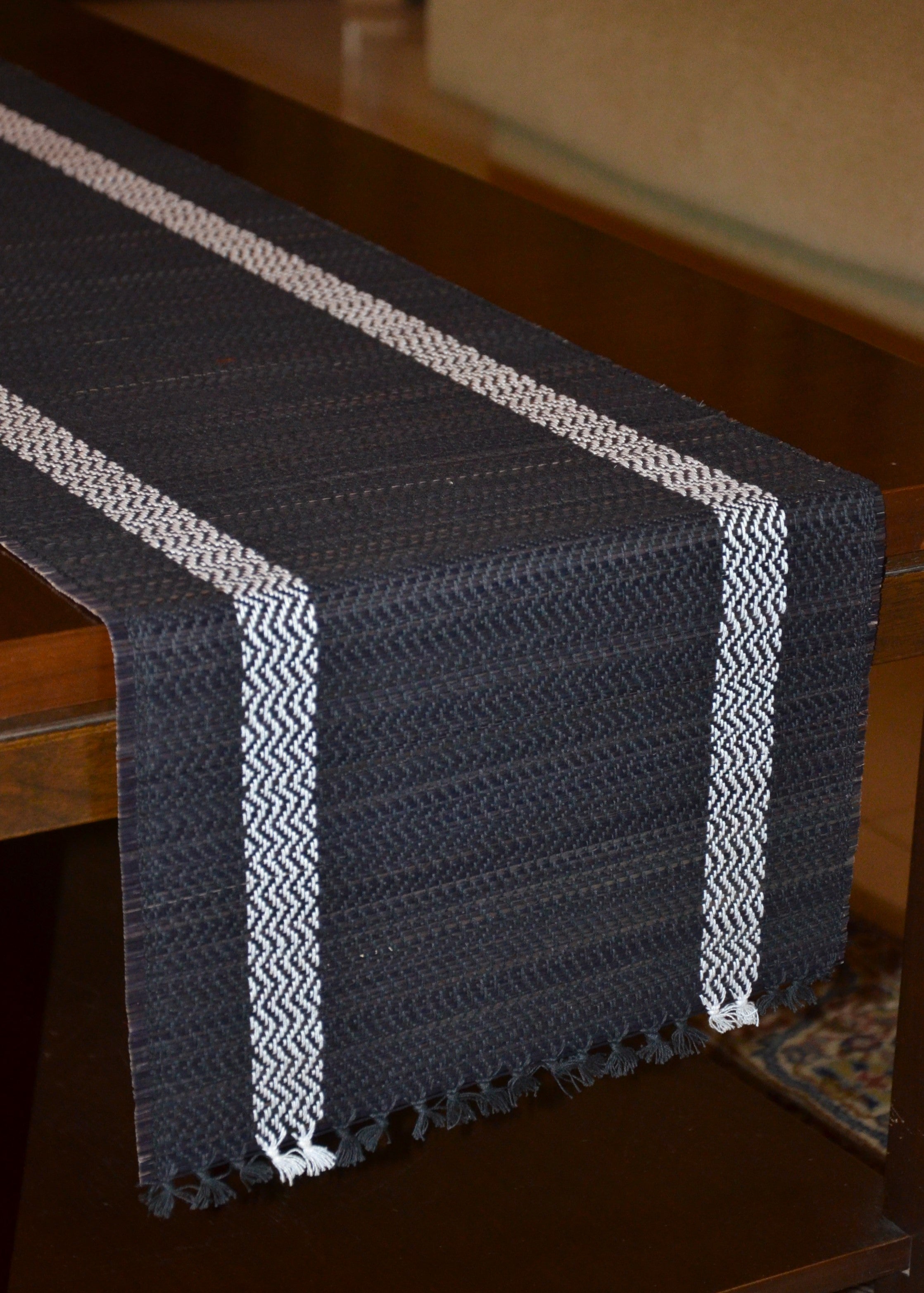 Dharini Madurkathi Tassels Table Runner Charcoal