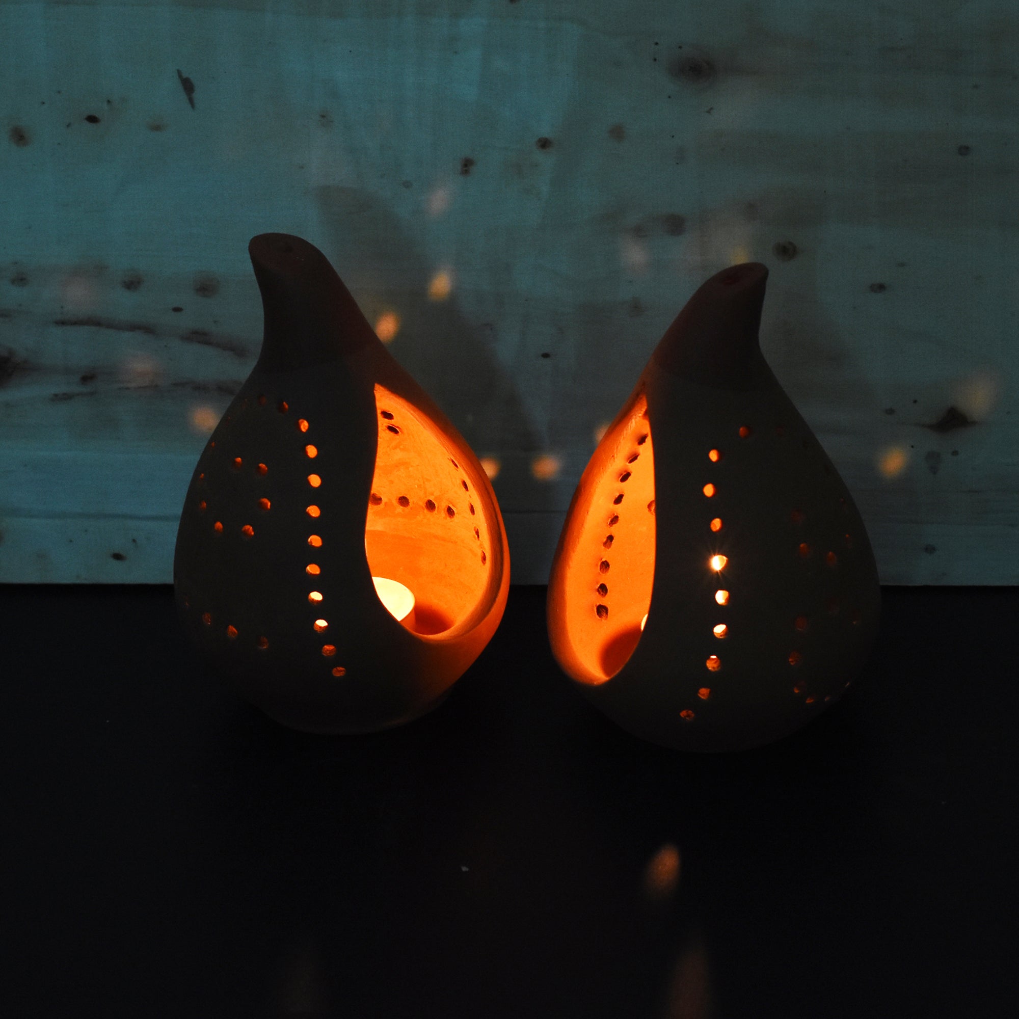 DROPLET Candle Holder / Pots Set of 2 + complimentary 2 tealights/candles