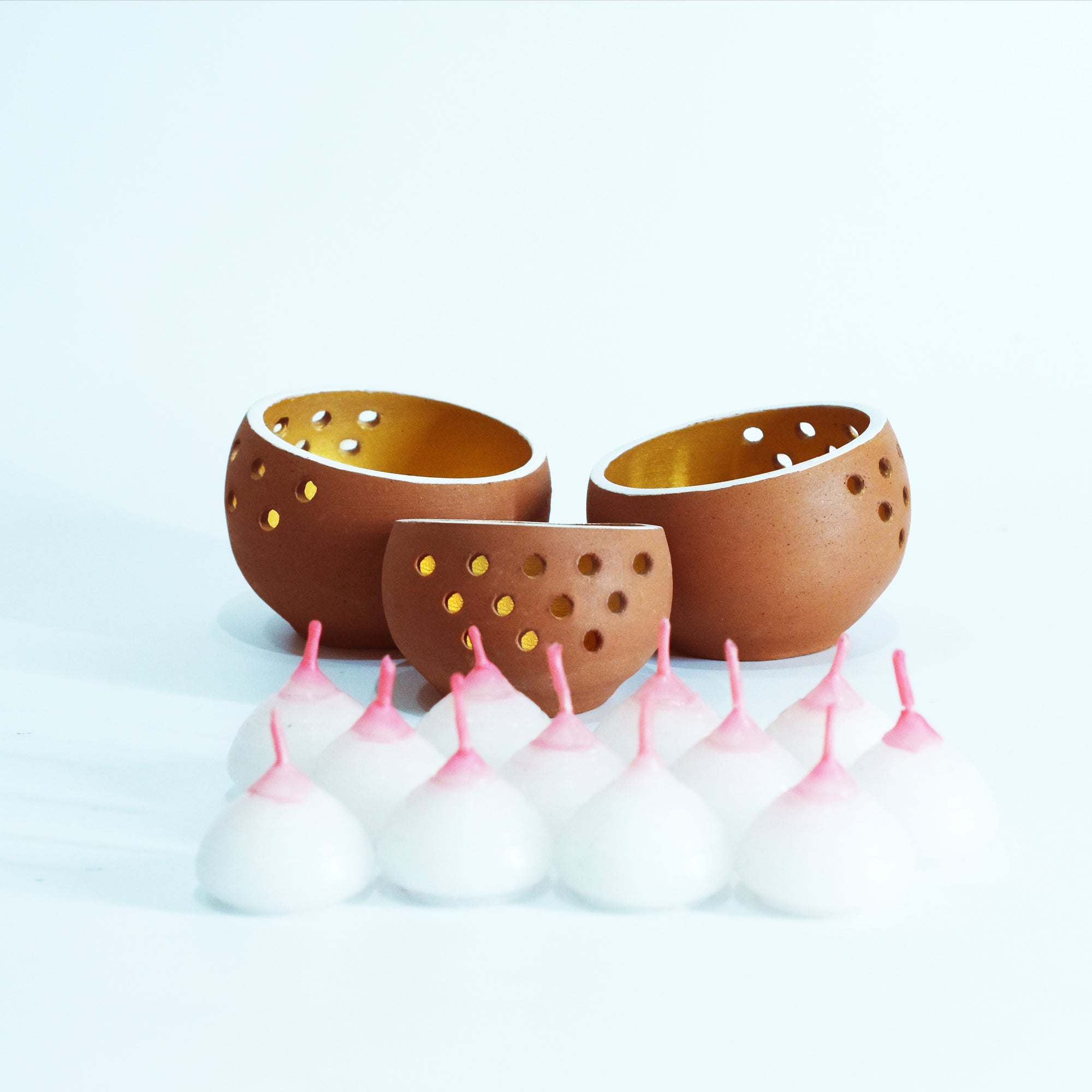 Package contains : set of 3 terracotta clay pot + 3 complimentary tealight candles