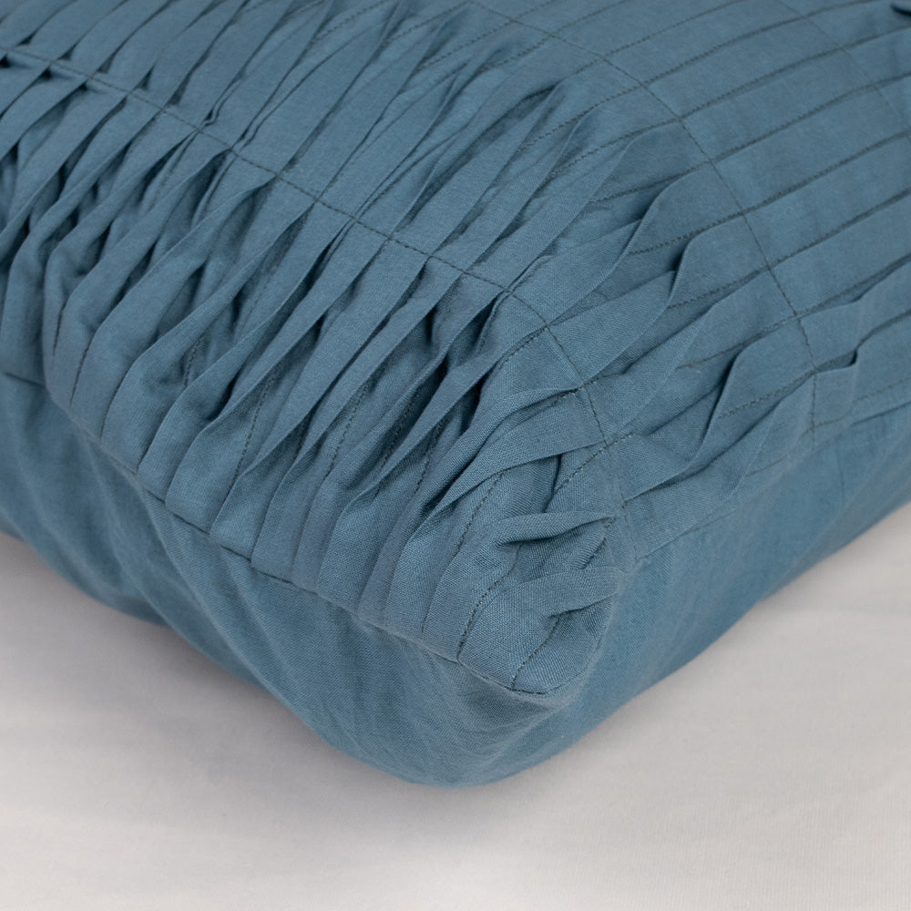 Enhance your space with these handcrafted pleated cotton cushion covers in a stunning shade of blue. The meticulous pleats create a classic and textured look, adding a touch of elegance. Enclosed with a concealed zipper at the bottom for easy cleaning and cover removal.