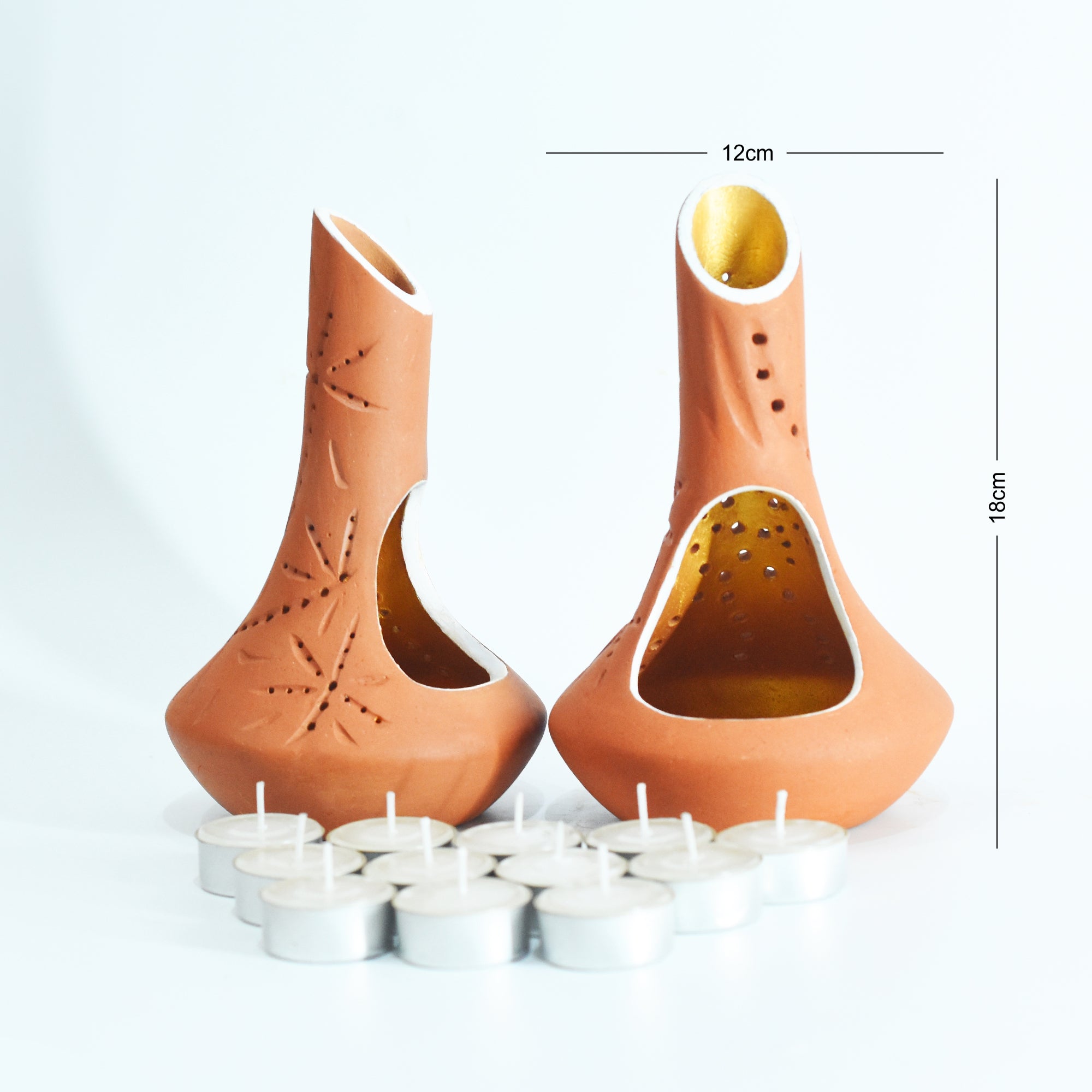 Package contains : set of 2 terracotta clay candle stand + 2 complimentary tealight candles