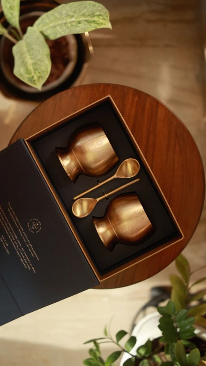 Gond Gift Box | Set of 2 Dessert Bowls | Etched Brass Dinnerware