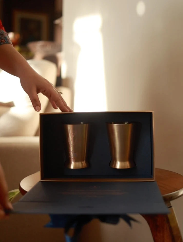 Gond Gift Box | Set of 2 Glasses | Etched Brass Dinnerware