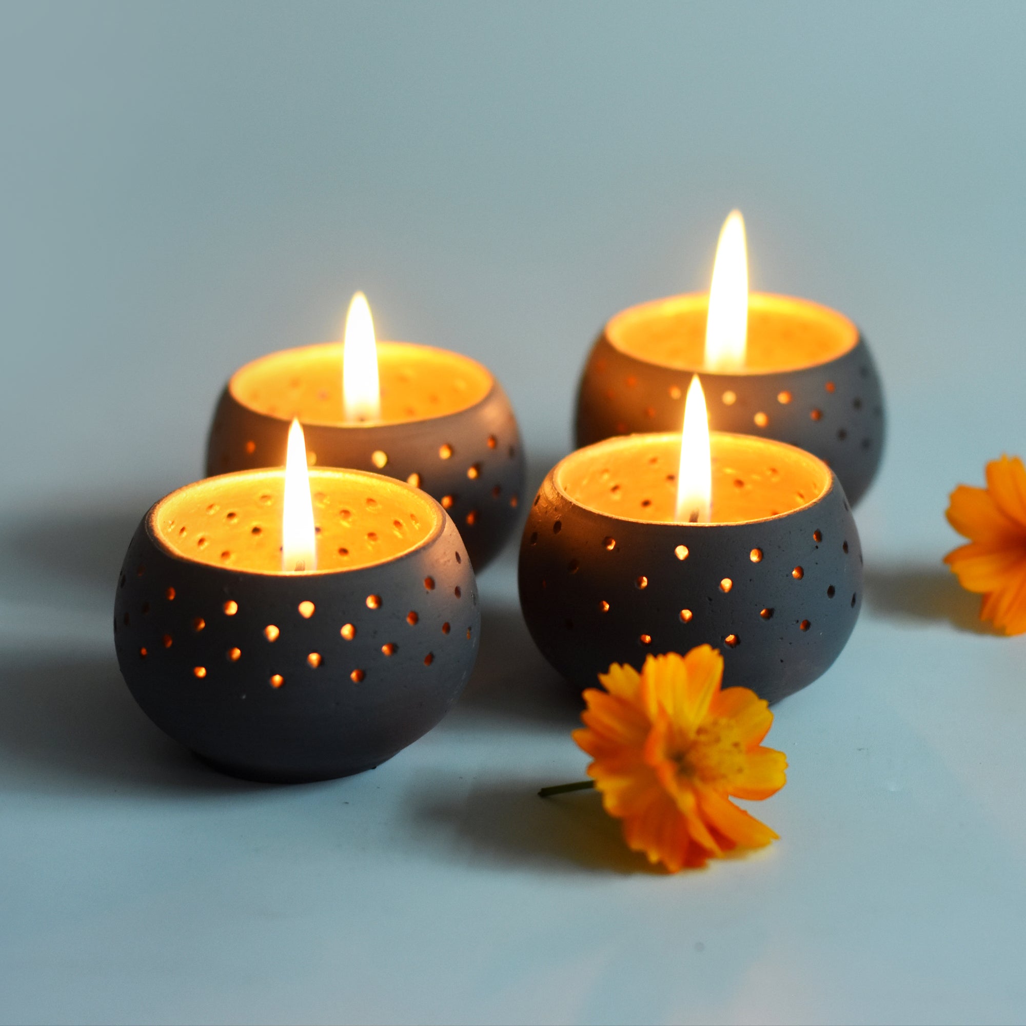 Package contains : set of 4 terracotta clay pot + 4 complimentary tealight candles