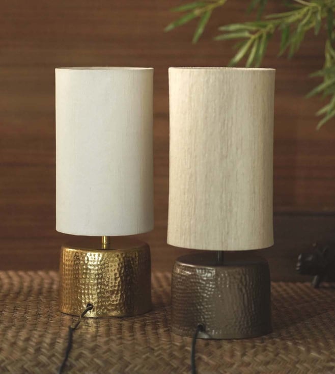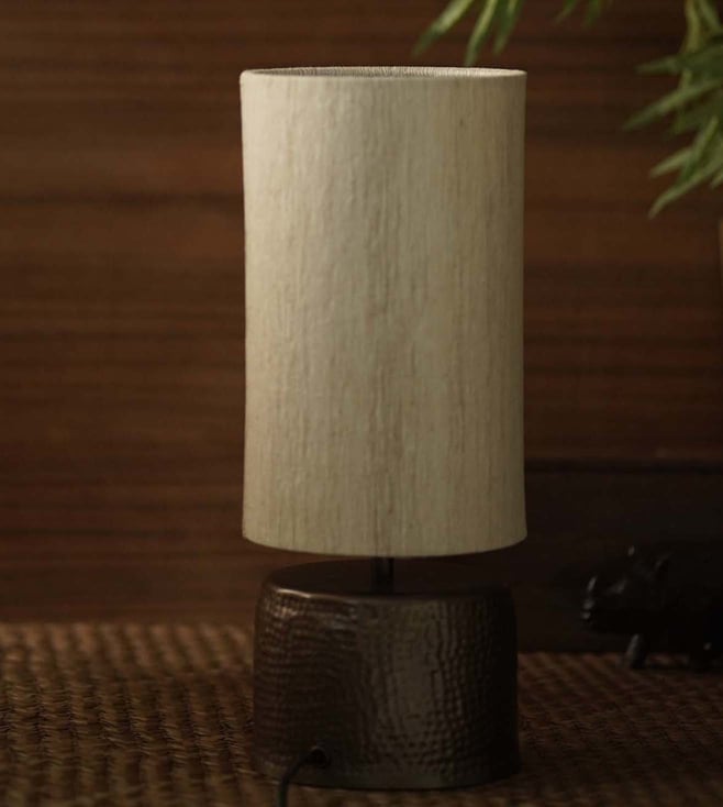 HAMANI ANTIQUE GOLD LAMP with RAW SILK SHADE