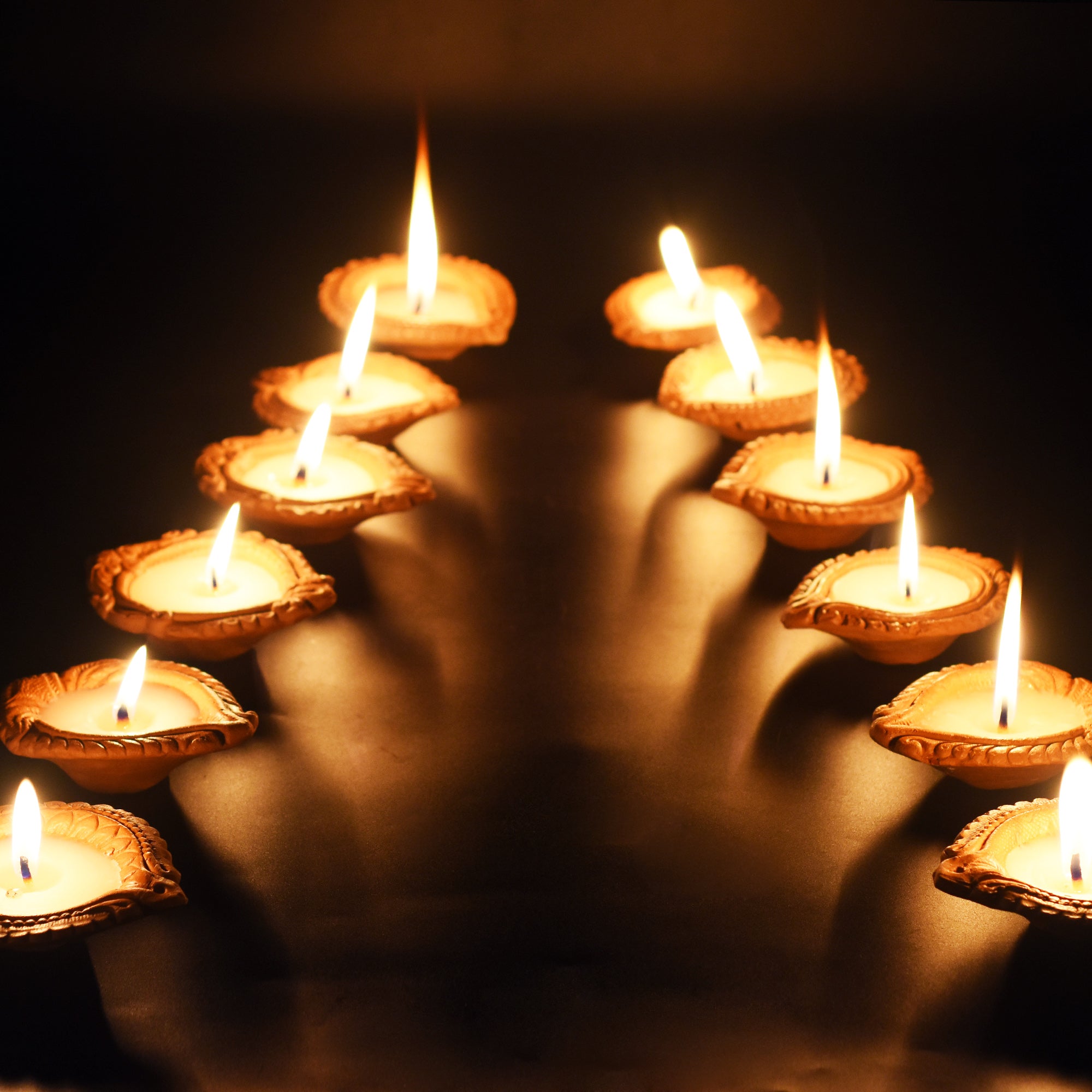 Traditional Terracotta little Diya with lots of different motiff designs filled with paraffin wax. Terracotta Diyas are handmade with small moulds by village womens with lots of care these candles come in a set of 12 with. Perfect for festive seasons and celebrations be it Diwali, Christmas, Puja etc.