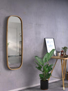 This exquisite oval mirror with a supple bamboo finish is available in two sizes.
