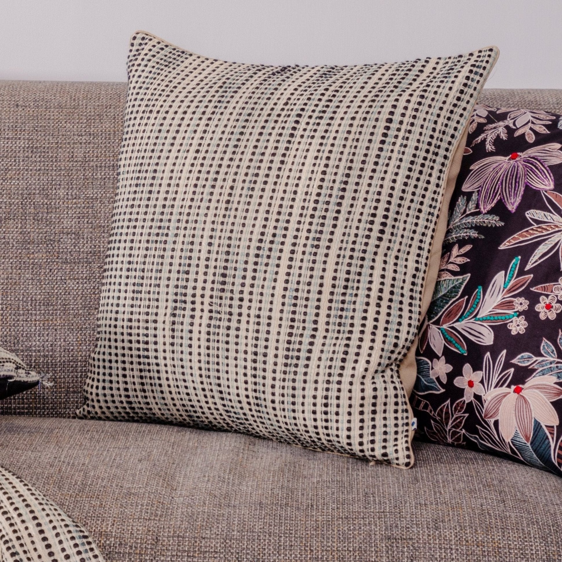 Add a touch of artisanal charm to your space with our handwoven tweed cushion cover. Expertly crafted with a blend of vibrant colors, this cushion showcases textured grey rib lines that elegantly ripple across a neutral base. The interplay of colors and textures creates a sophisticated yet playful look, perfect for adding depth and personality to your living space. Whether you’re styling a cozy corner or revamping your sofa, this cushion cover brings warmth and character to any setting.