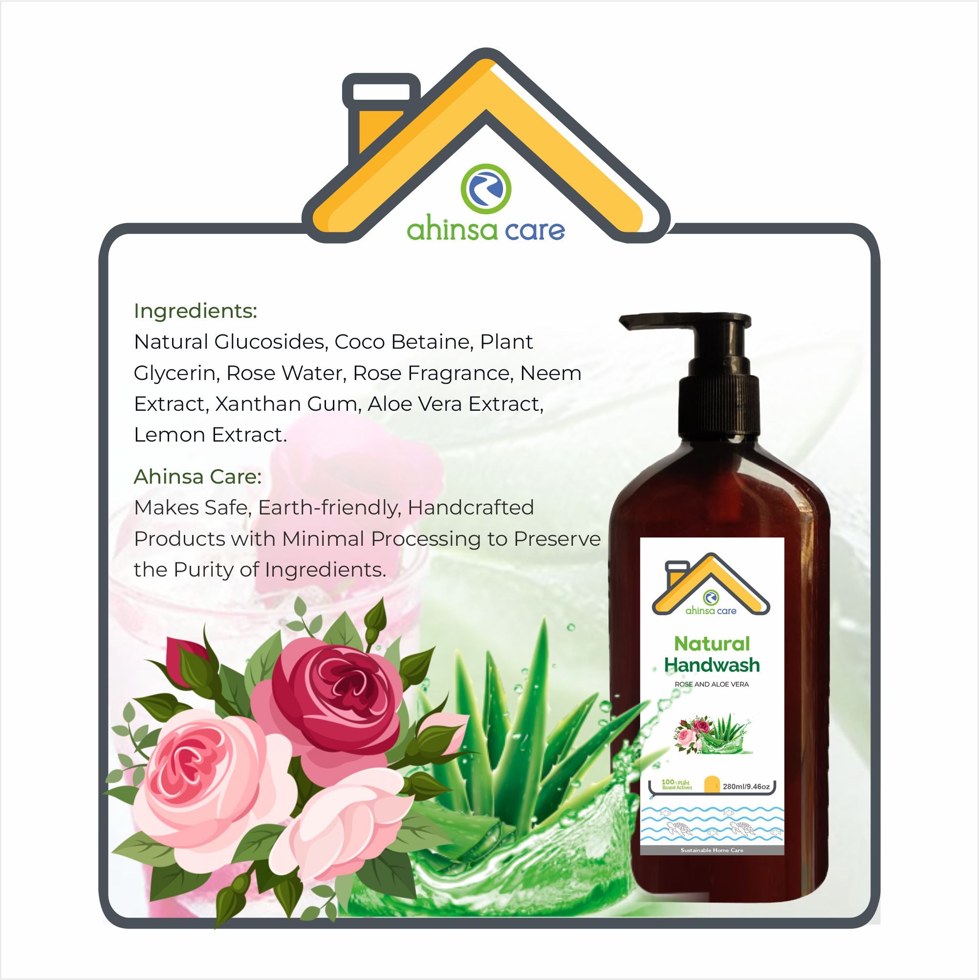 CONVENIENT PUMP BOTTLE: Ahinsa Care Natural Handwash comes in a convenient pump bottle, allowing for easy dispensing and mess-free usage.