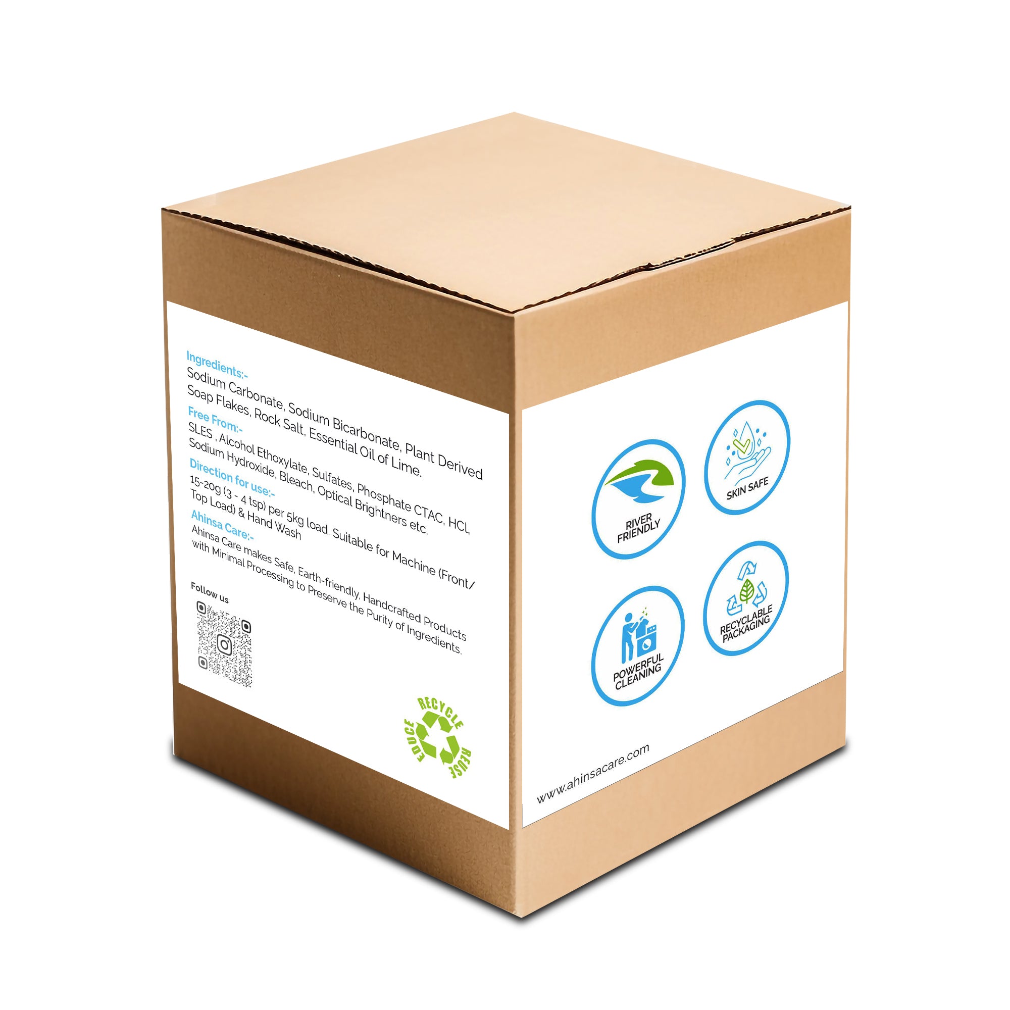 Enhance your laundry experience with Ahinsa Care Natural Laundry Detergent powder. Made with care in India, our detergent utilizes the power of naturally available Salts and Minerals for effective and eco-friendly cleaning. With full transparency and no greenwashing, our simple yet powerful formula ensures clean clothes every time.