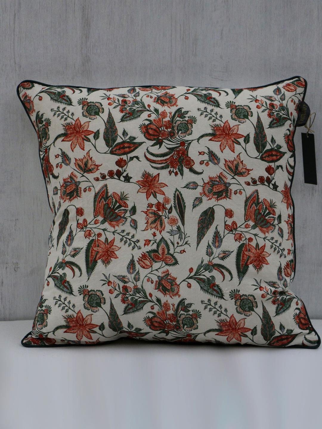 Nimmit Linen Cotton Hand Block Floral PrintCushion Cover