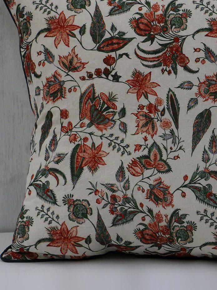 Cotton-Linen Hand Block Printed cushion cover, with Floral Print.