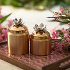 Hammered and glossy dome shaped lid juxtaposed with matt finished base, all in pure copper makes the Padamahraj Container truly royal. Silver plated lotus on the lid adds the quintessential Indian element of purity and divinity.