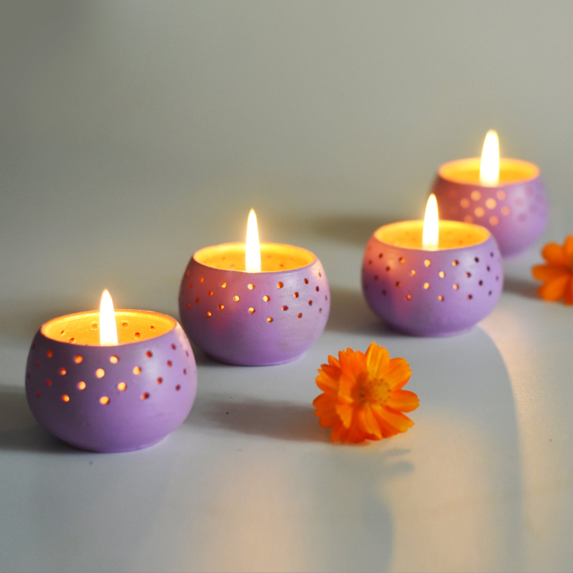 Package contains : set of 4 terracotta clay pot + 4 complimentary tealight candles