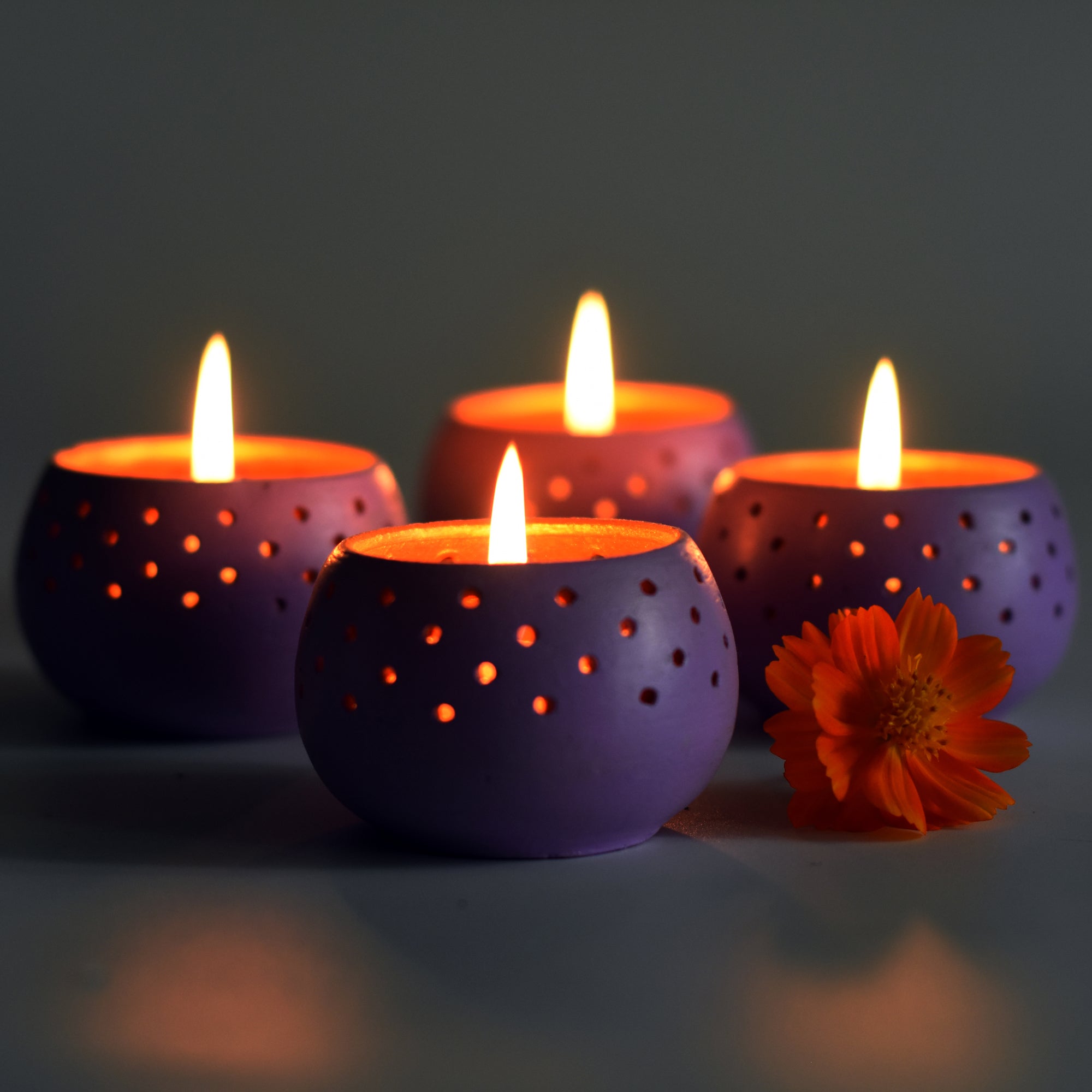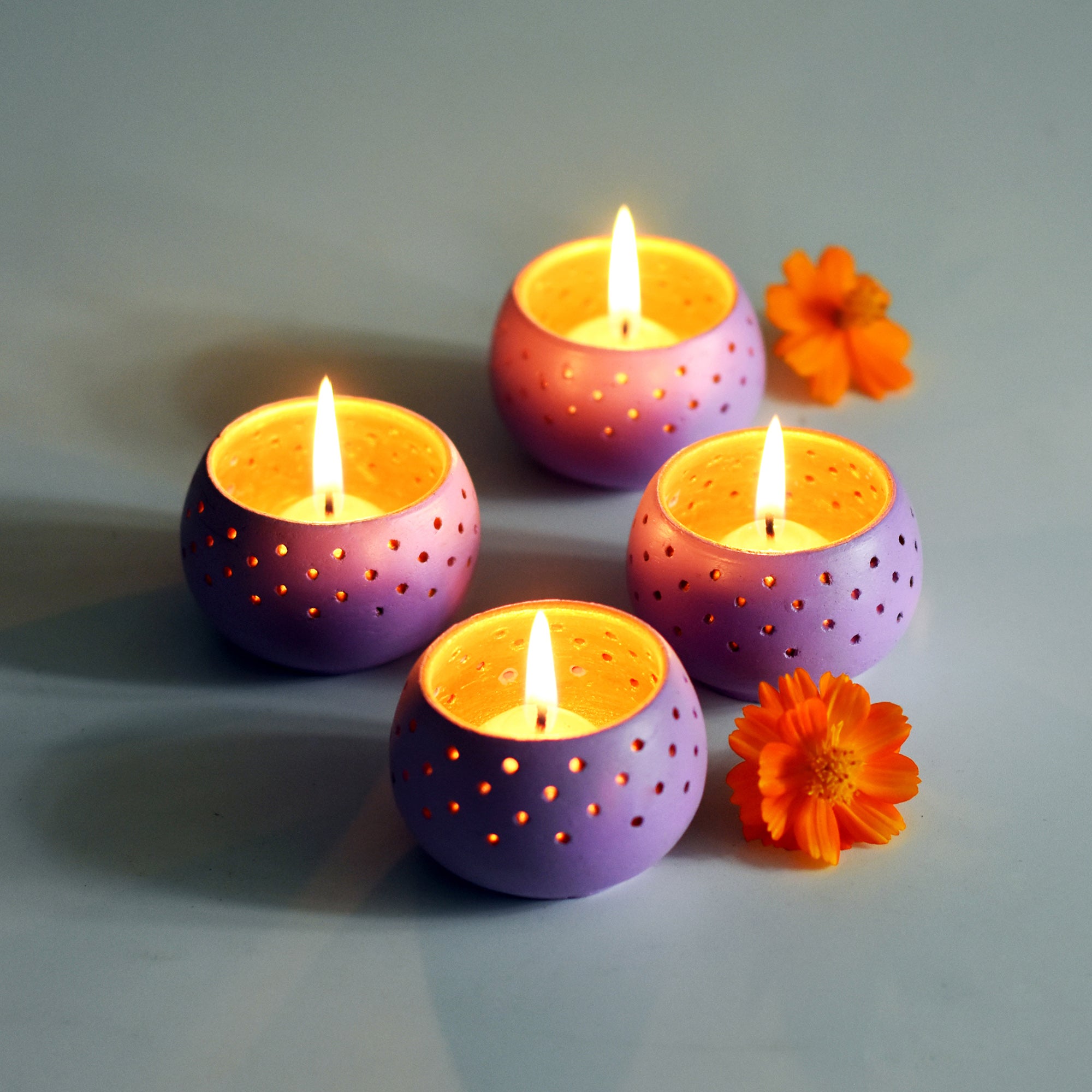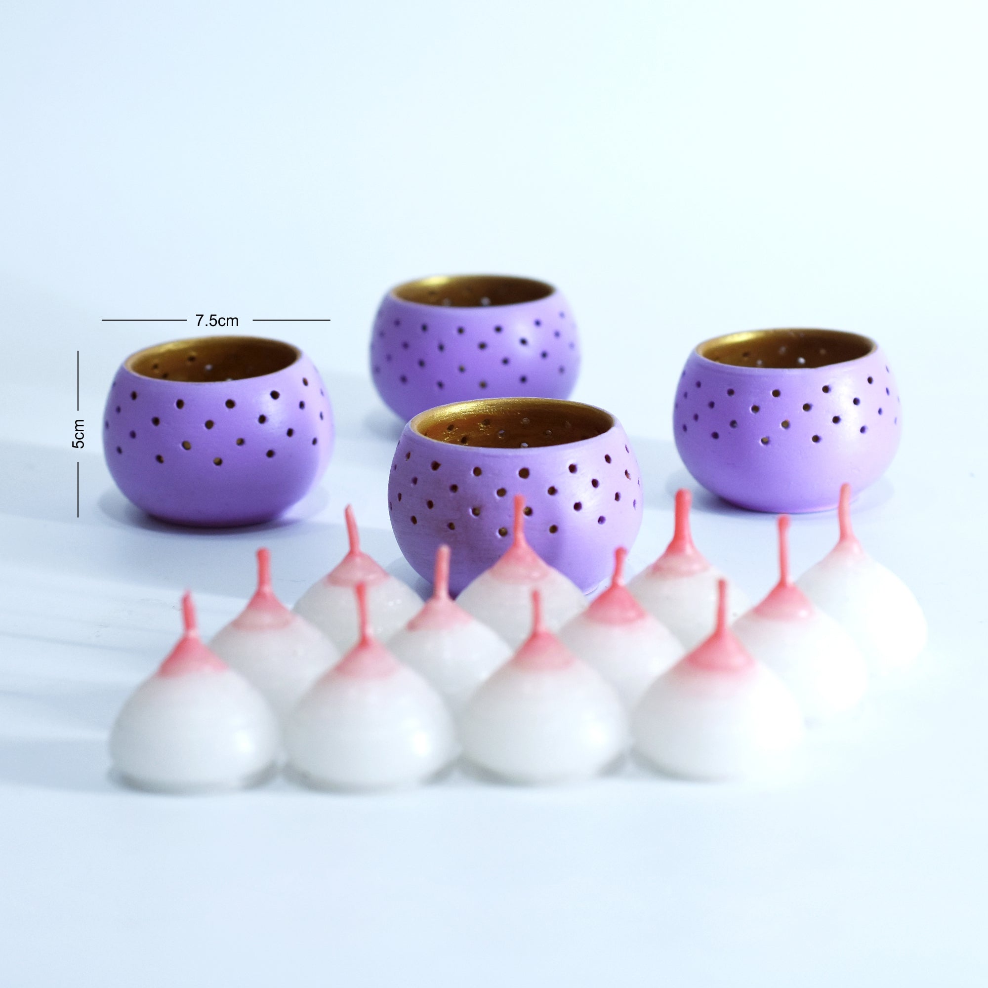Purple Outer & Golden Inner "DOME" Tealight Pots / Holders : Set of 4 + complimentary 4 tealights/candles