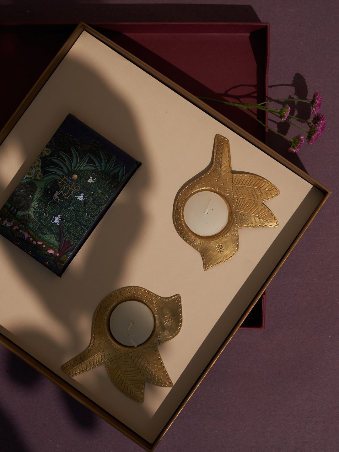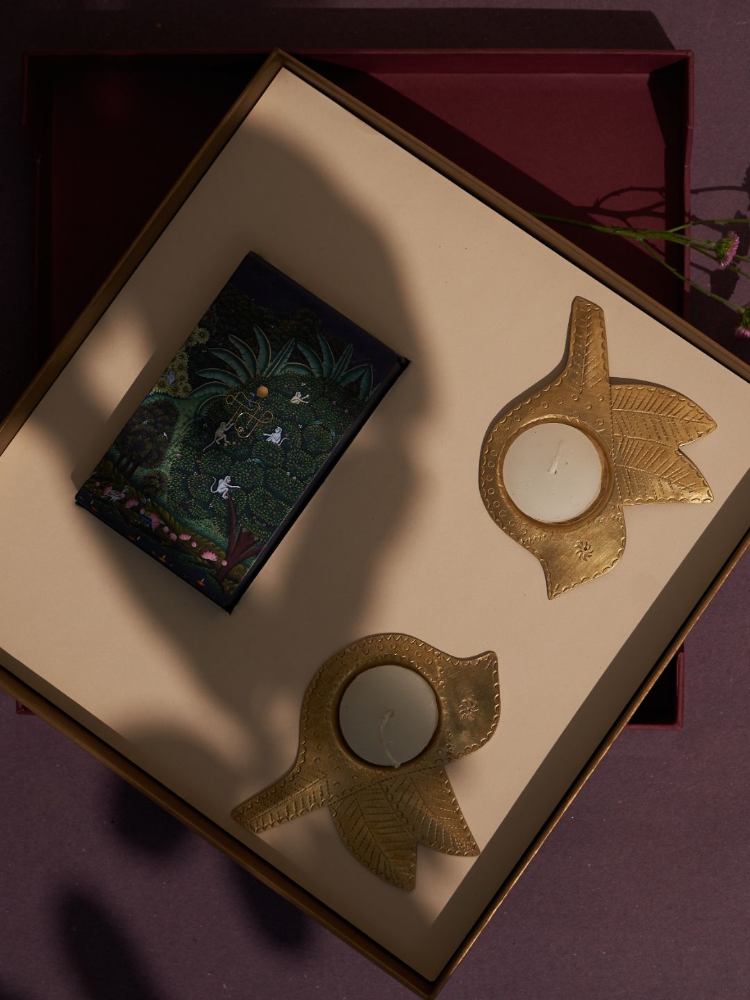 Ramya Gift Box | 2 chidiya Tea light holders + Playing Cards