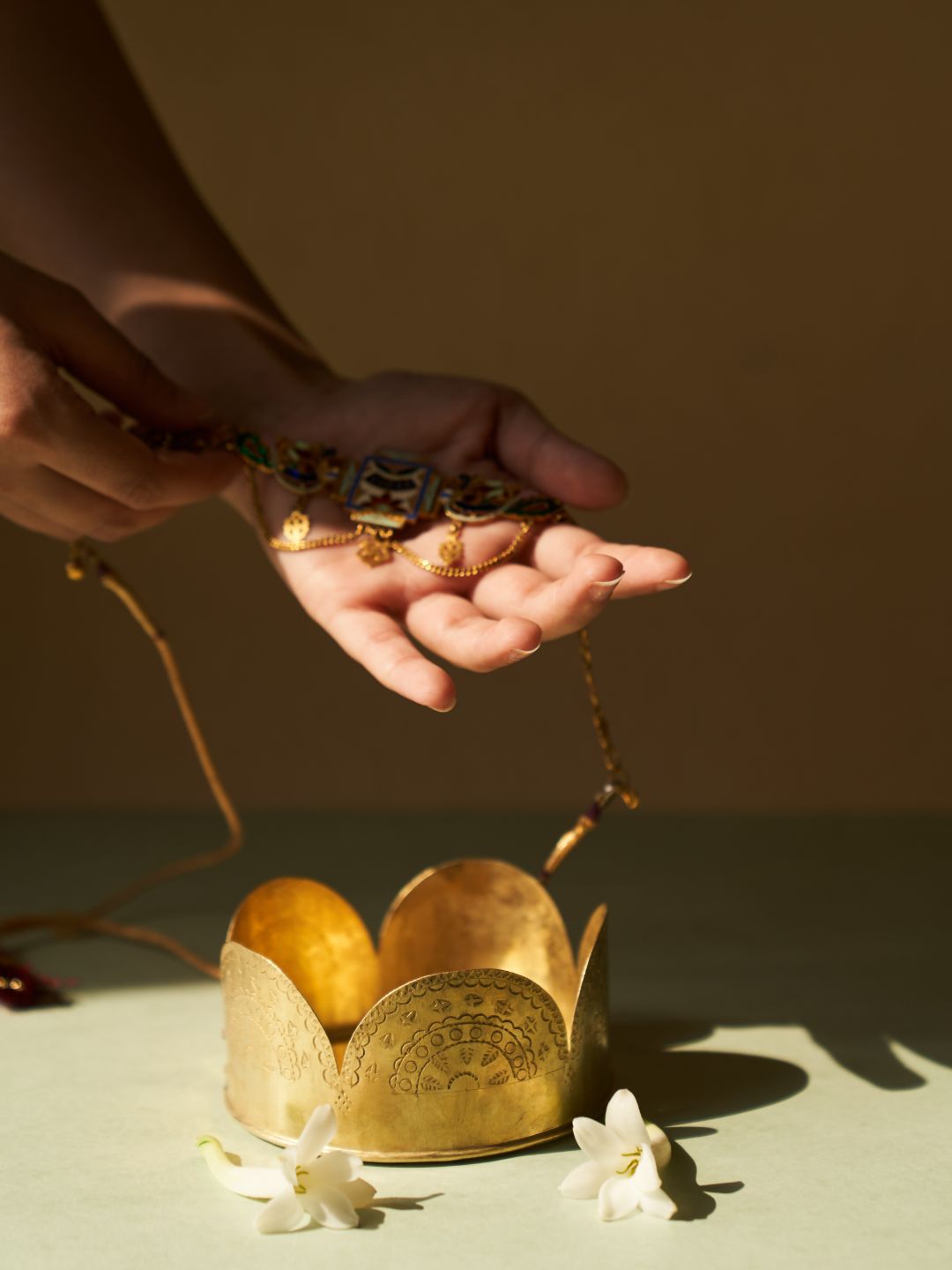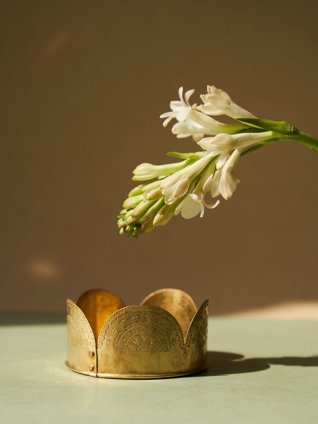 Reverence to the universal power is an essential to enhance the tranquility of mind. The TICP Candle Stand with stand is bejewelled with intricate nakshi patterns, that brings out the golds of brass. As an addition to the personal space or as a memorable souvenir, this Candle will light up your lives with its modest elegance