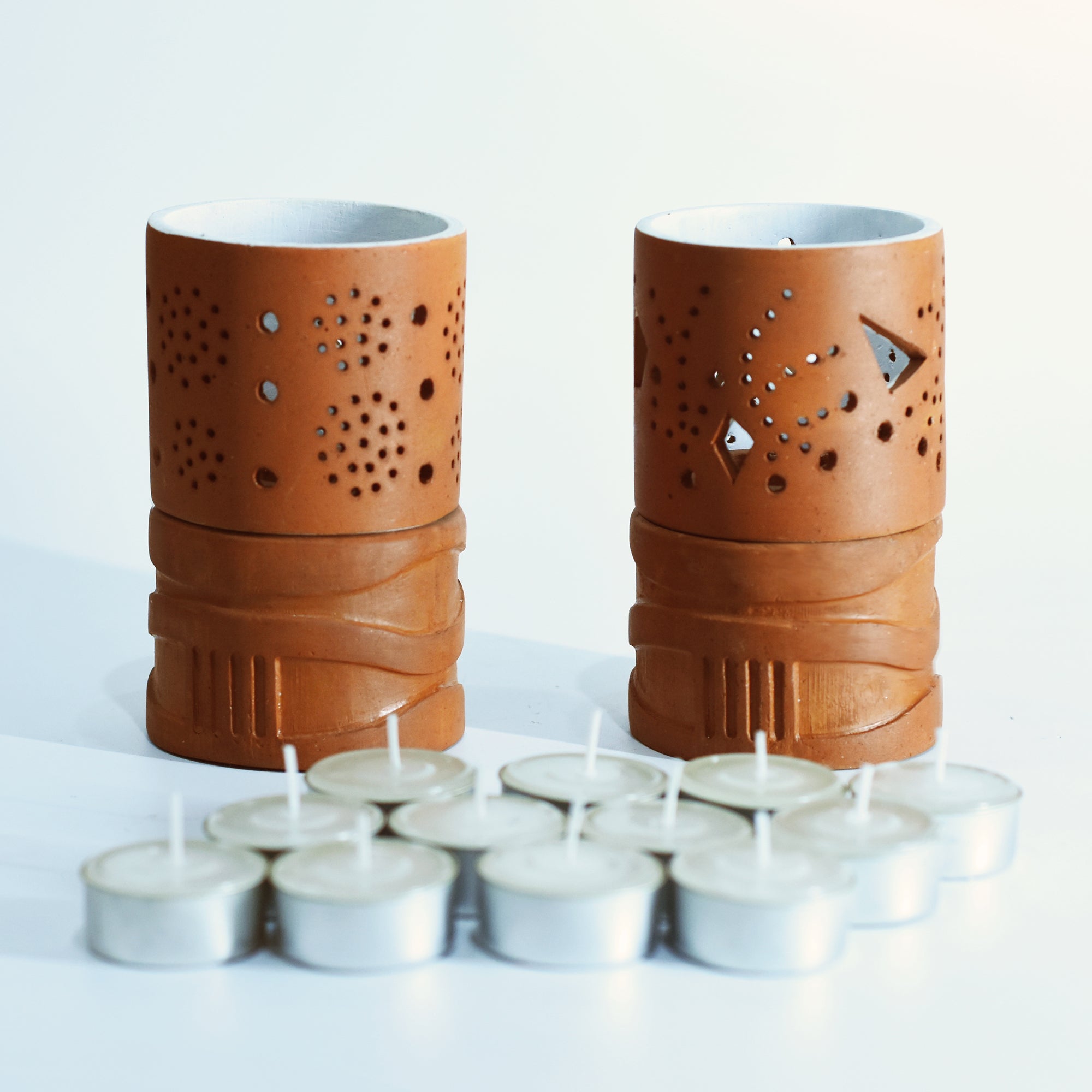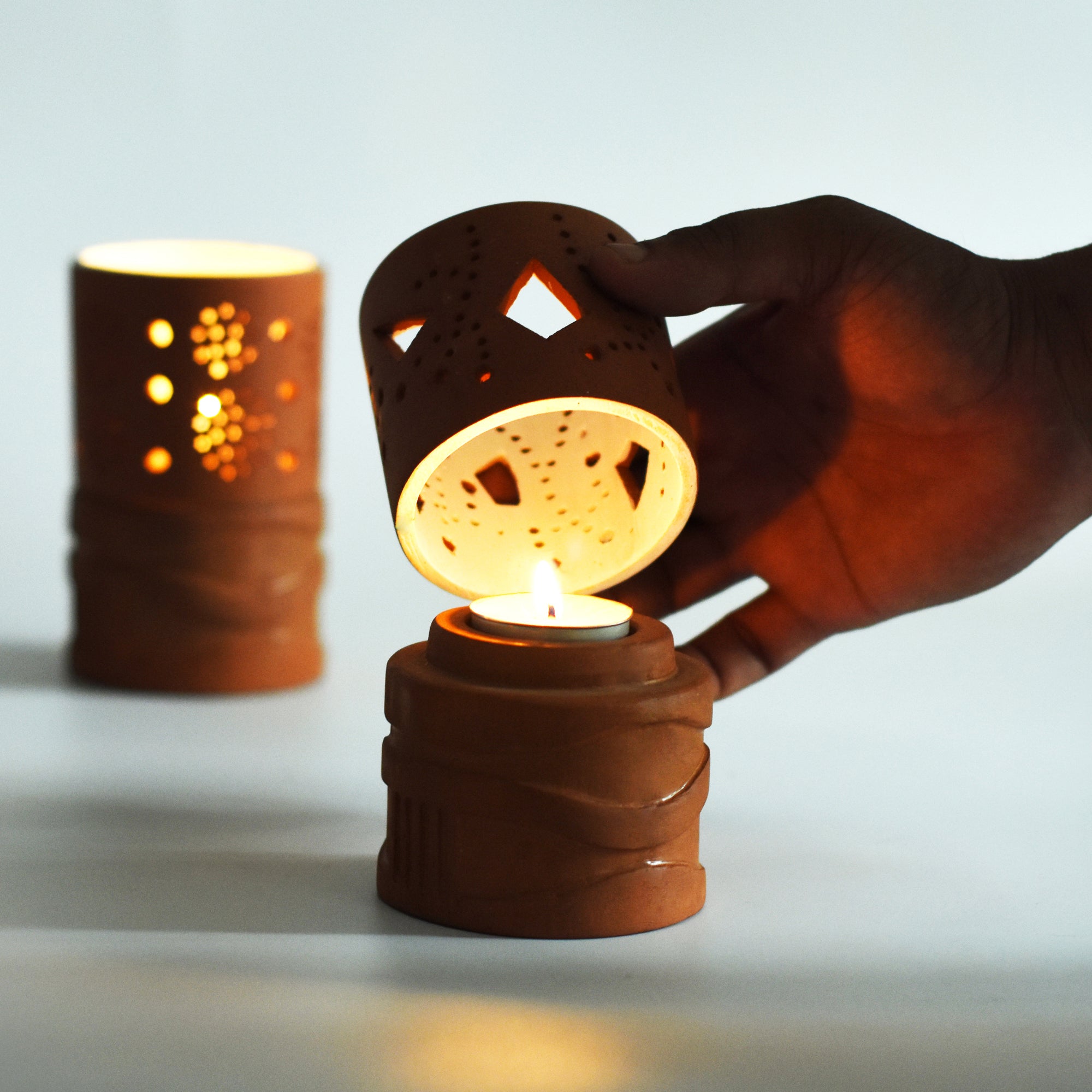 The Perforations on the outer surfaces create a beautiful effects when lit candle is placed in it.
