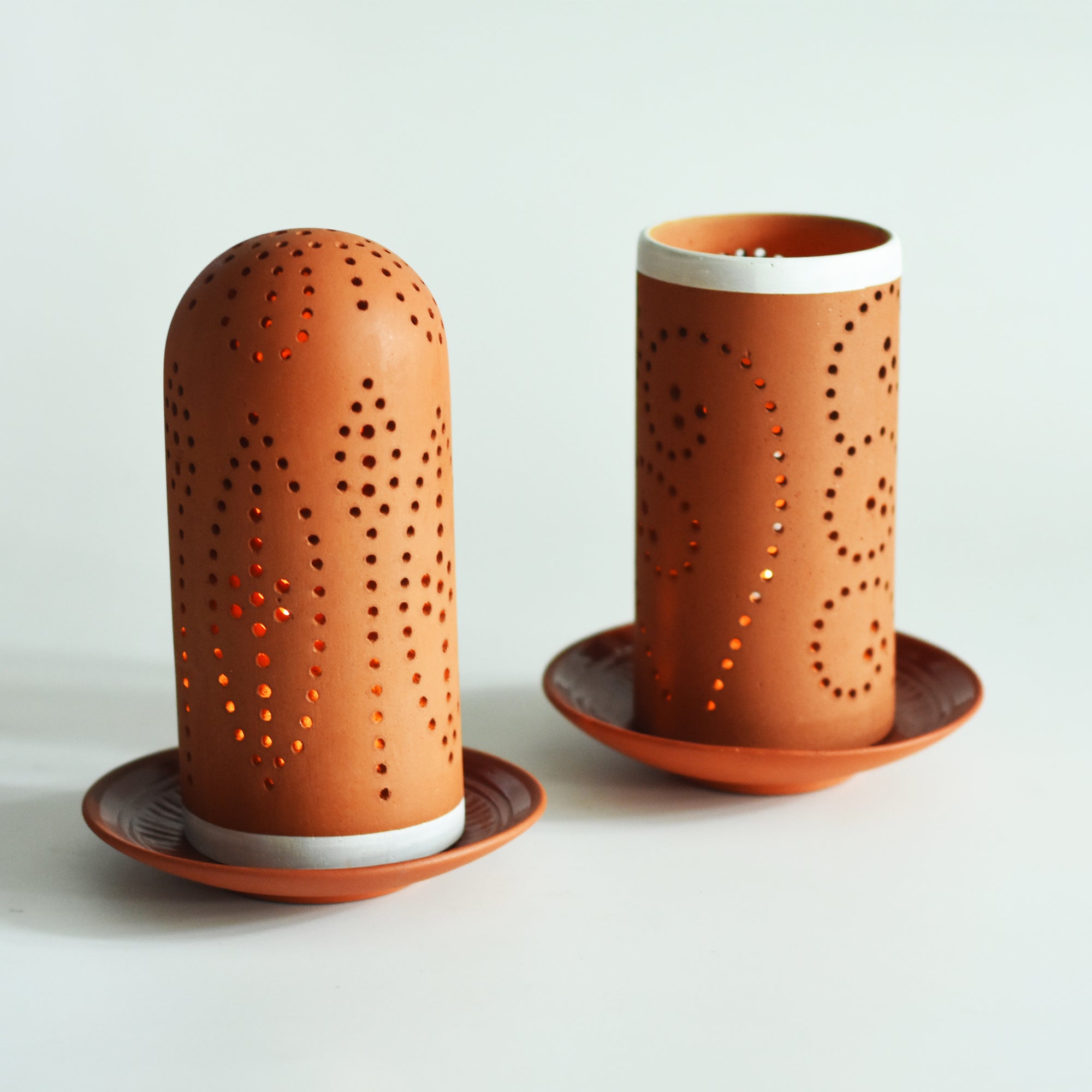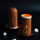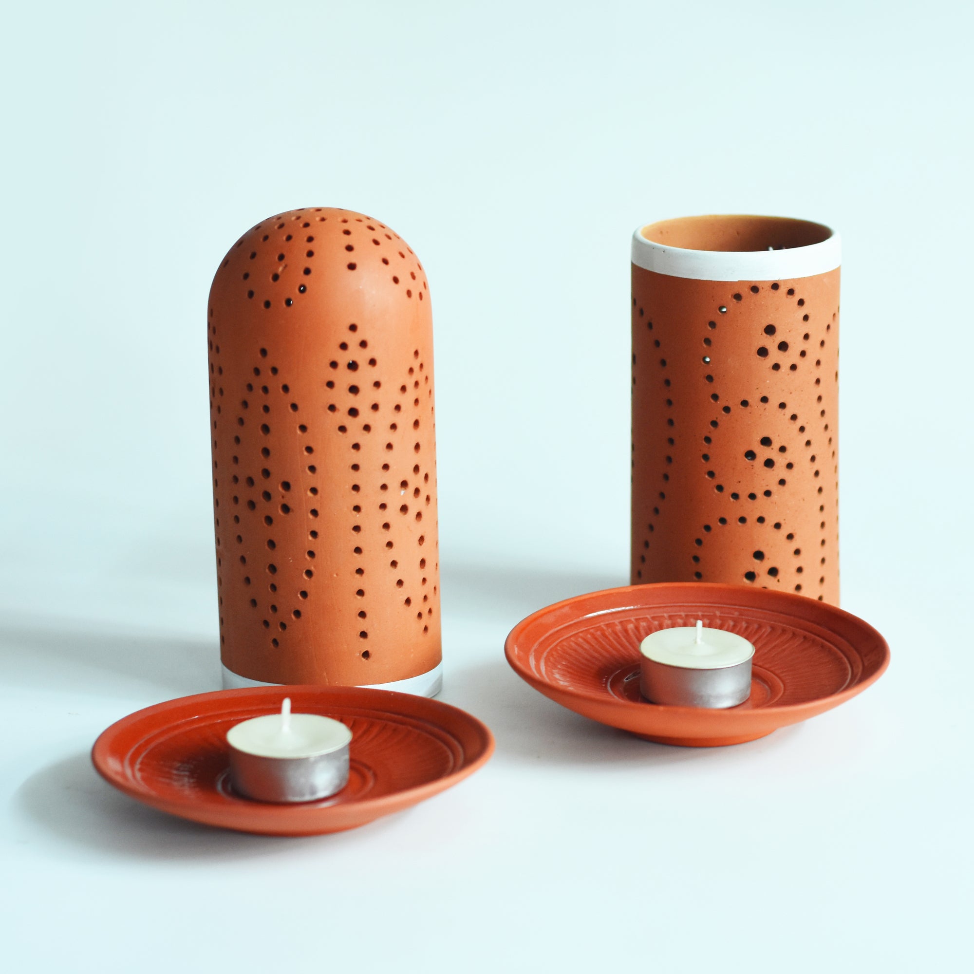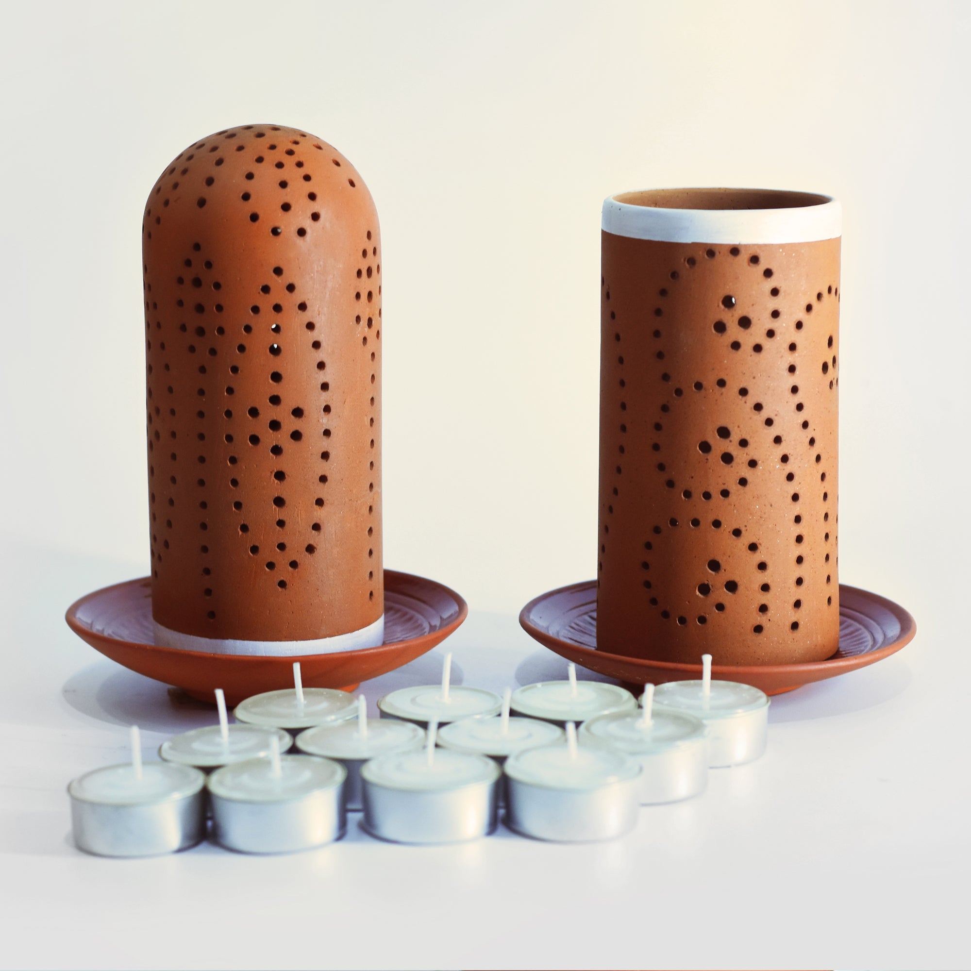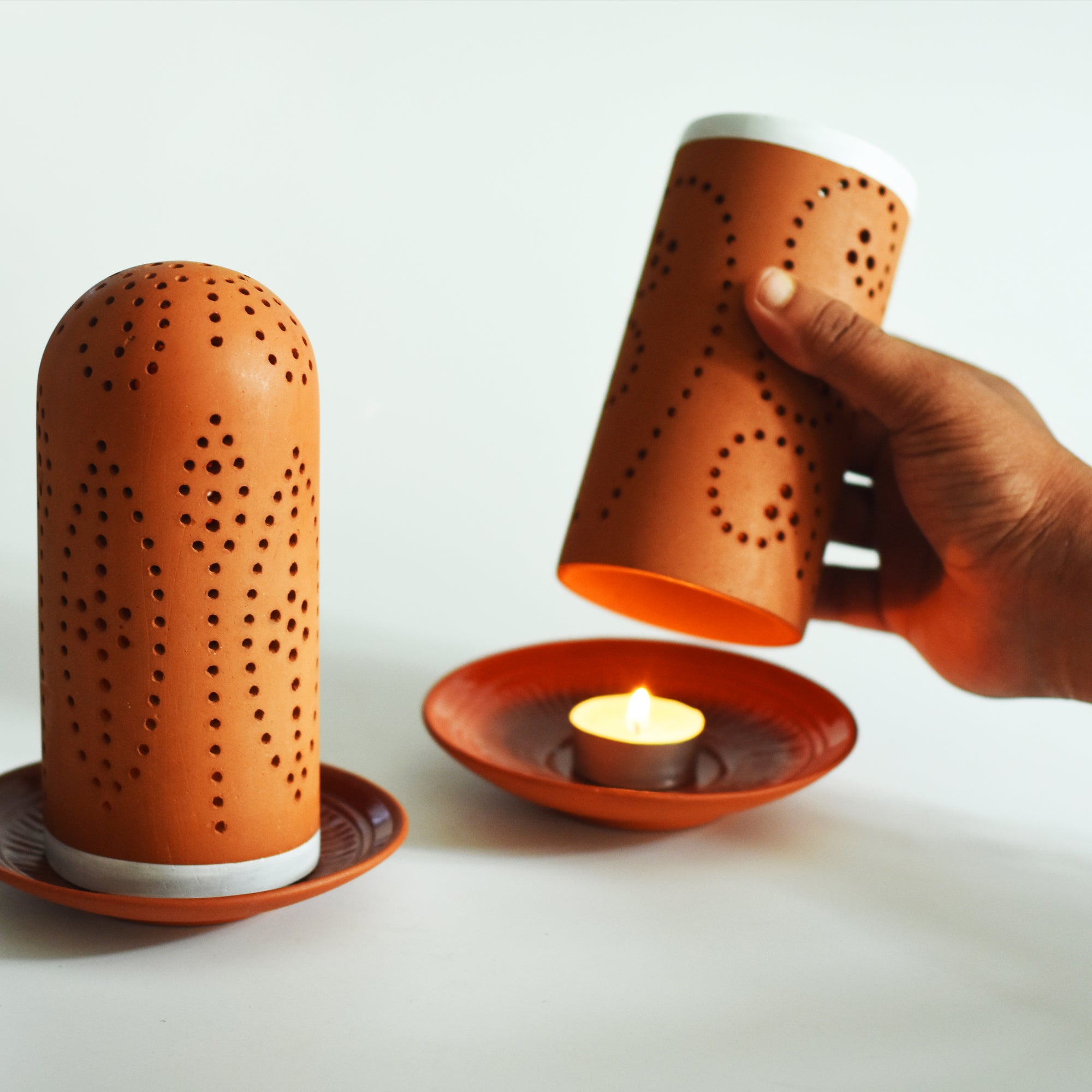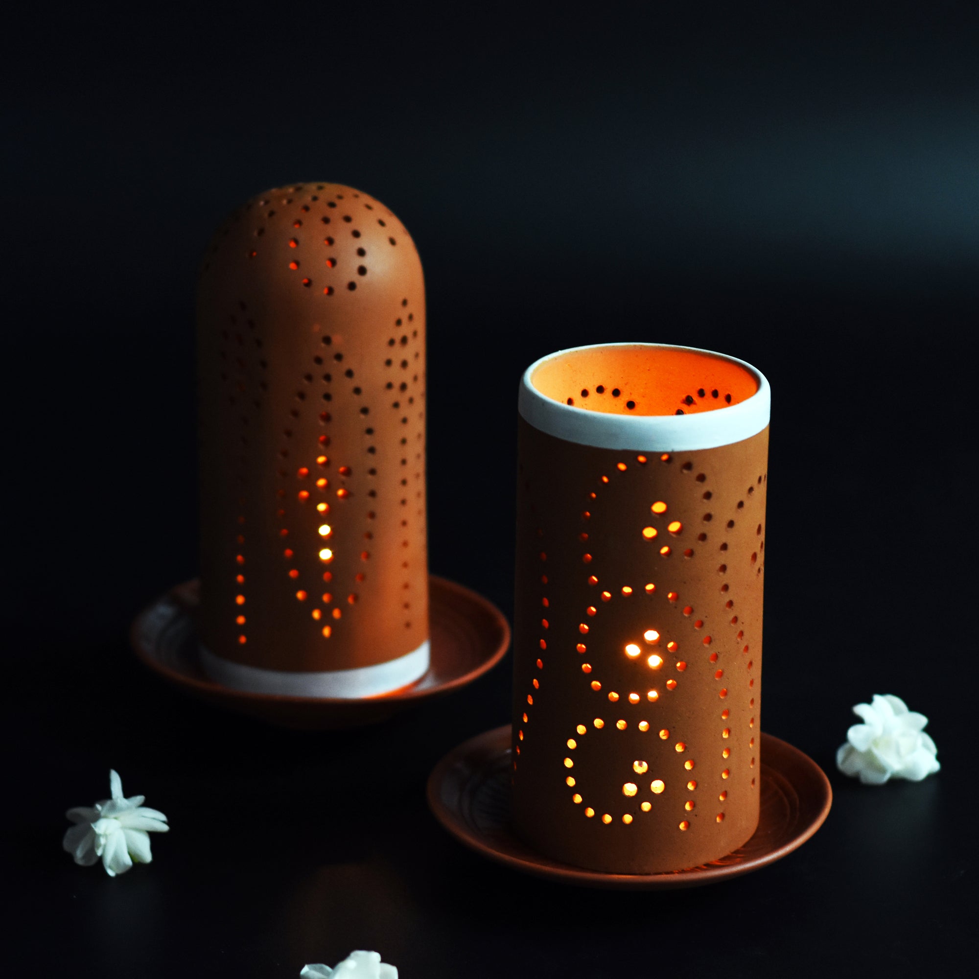 The Perforations on the outer surfaces create a beautiful effects when lit candle is placed in it.