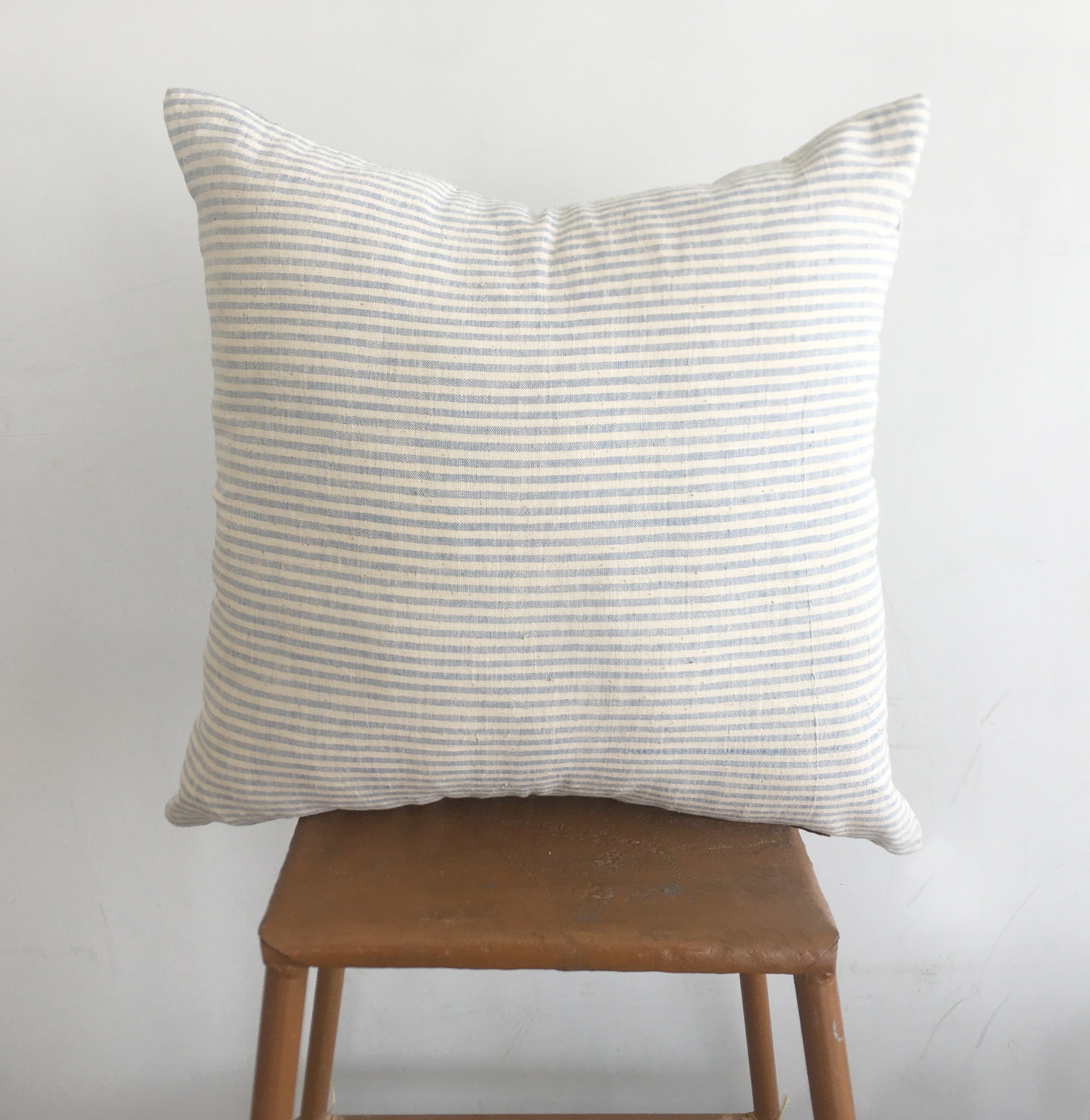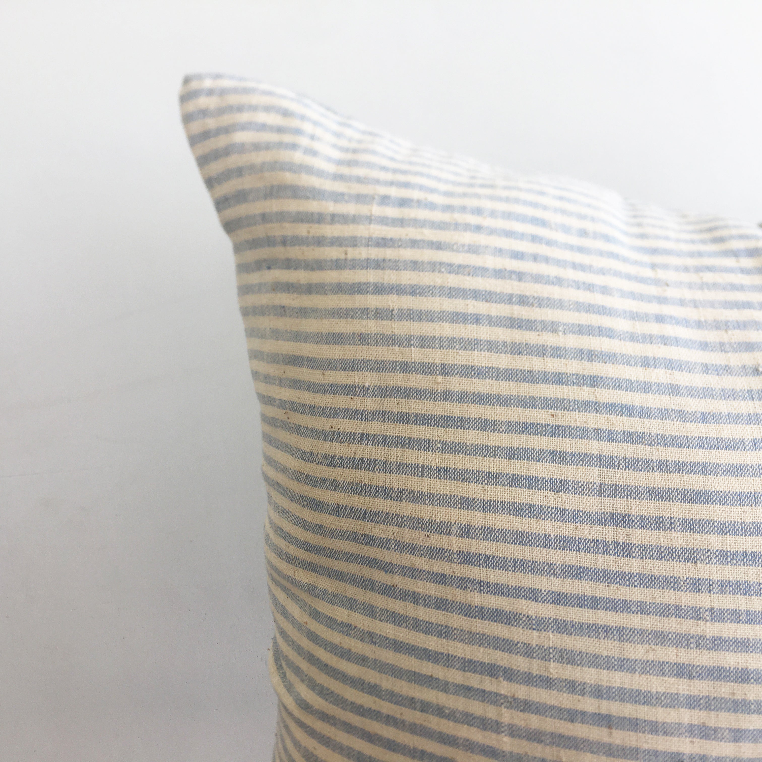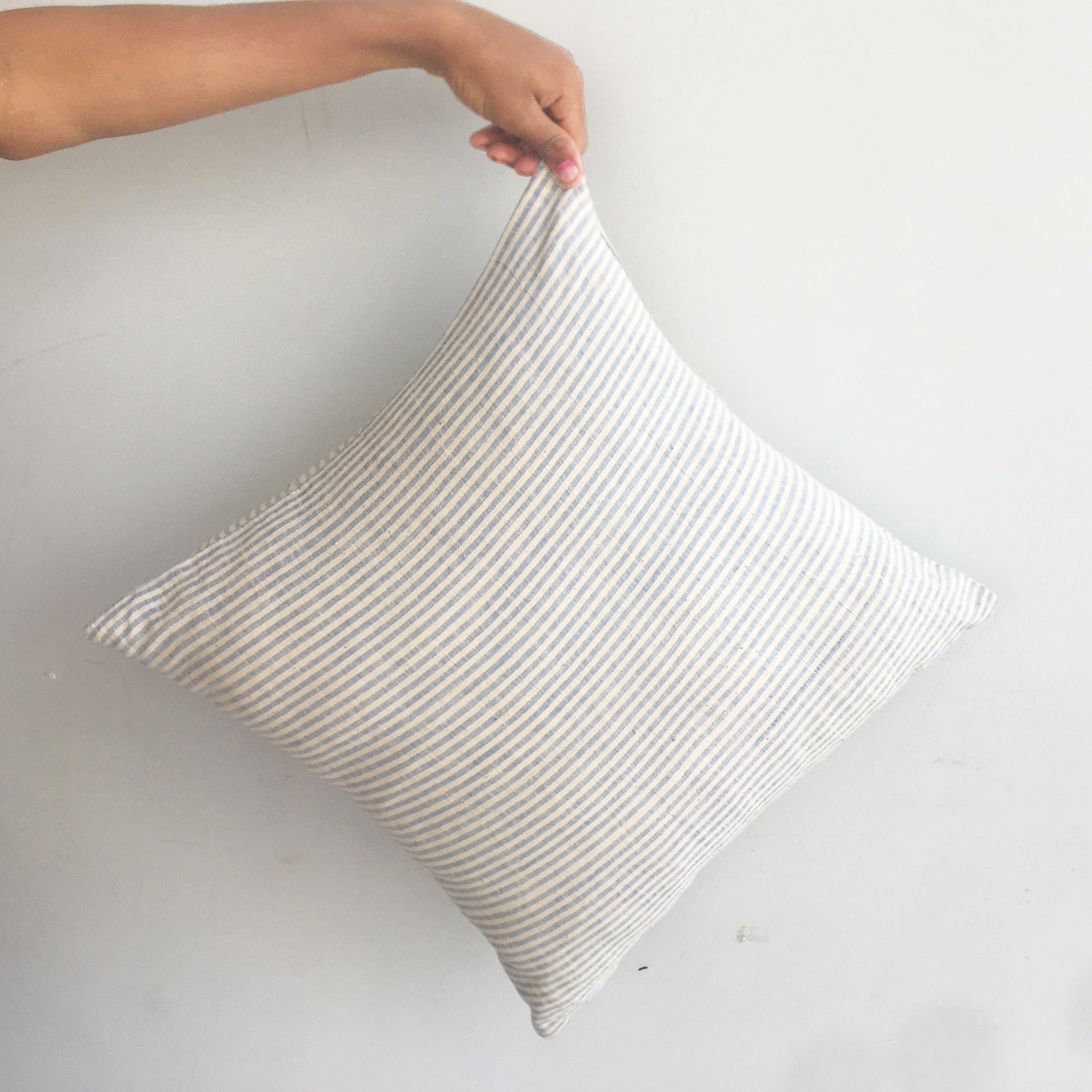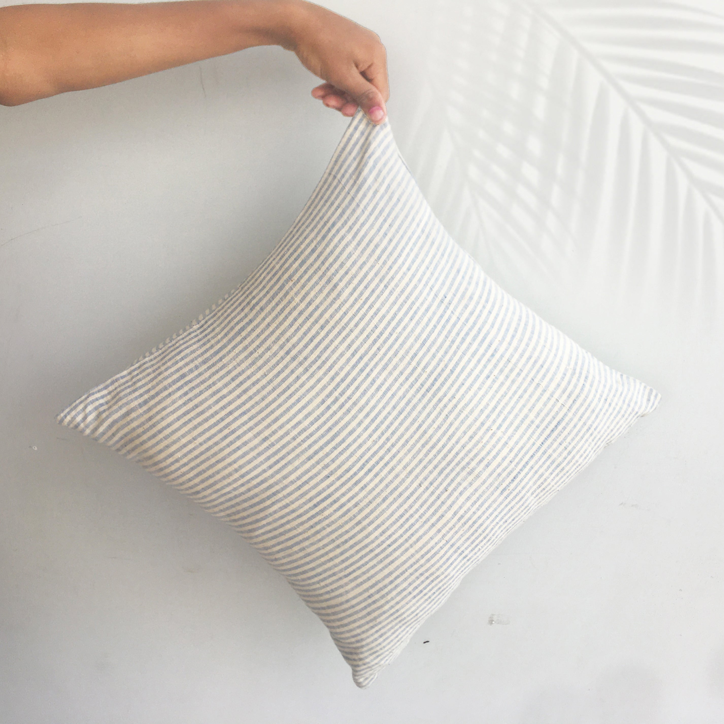 Striped Aqua Handspun Handwoven Cotton Cushion Cover 18" x 18"