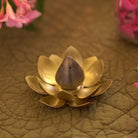 The quintessential and divine lotus is interpreted as an incense holder. The Suneheri Incense Holder comes with a antiques cast brass bud with perforations encased between lotus petals made from pure brass sheet. Slightly raised this agarbatti and dhoop stand is perfect for the pooja ghar and mandir. This devotional article is a great gift of blessings for auspicious havan and home puja.