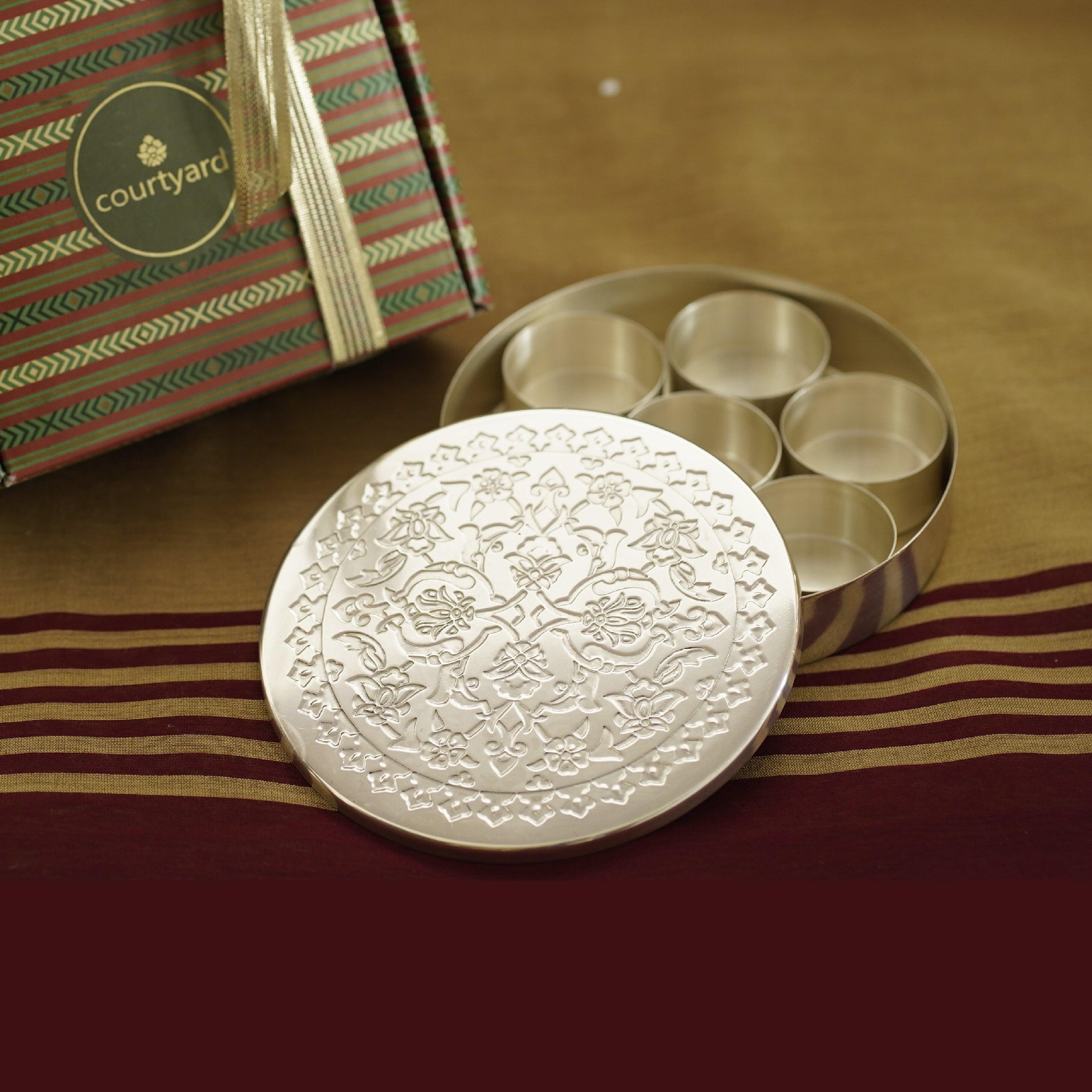 Silver has always been classic, luxurious, timeless and elegant. Courtyard’s Mrinalini Collection brings its bestsellers in finely deep etched brass, dipped in silver for home and gifting. Select from the impeccably finished silverplated products to make lasting impressions.