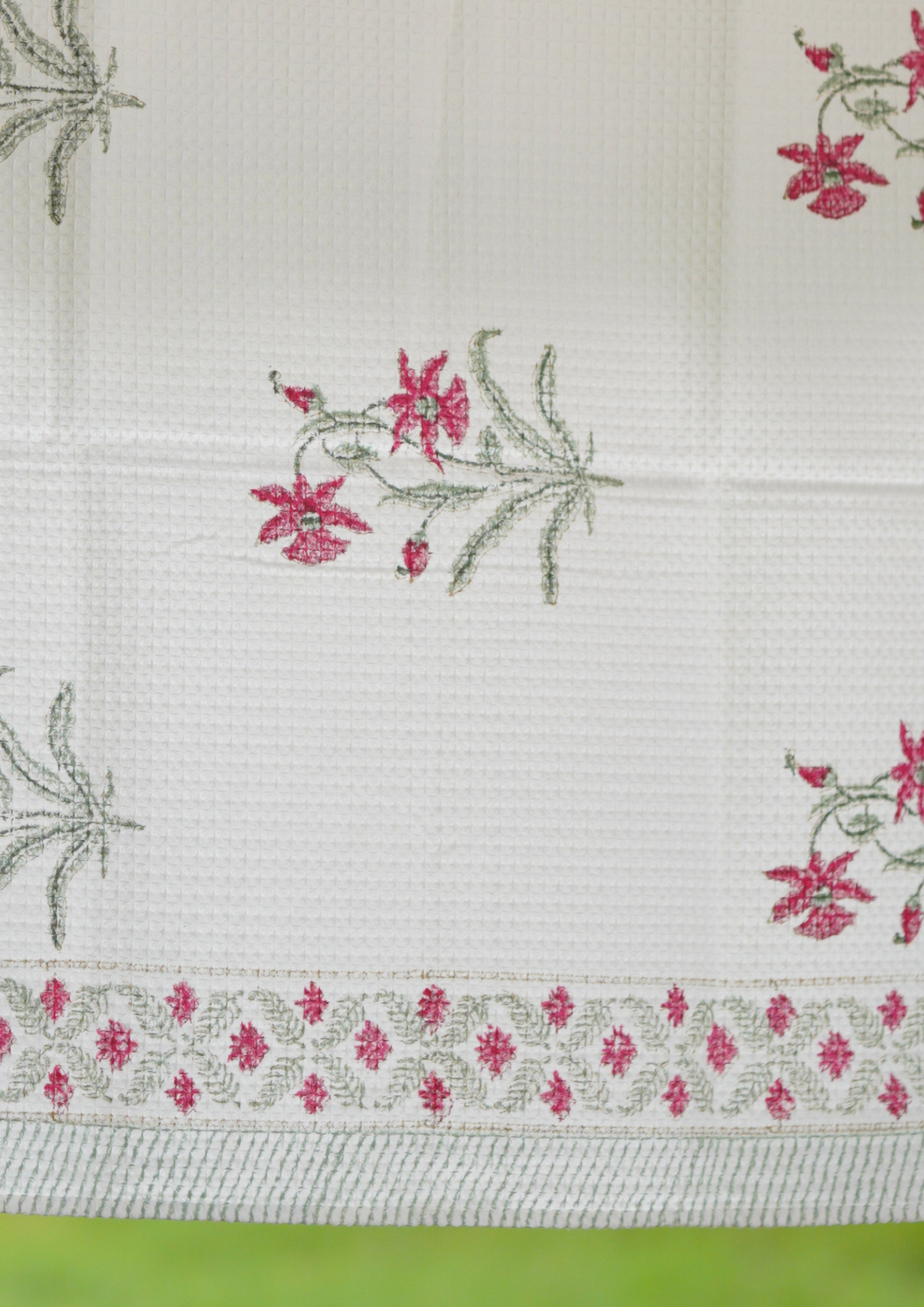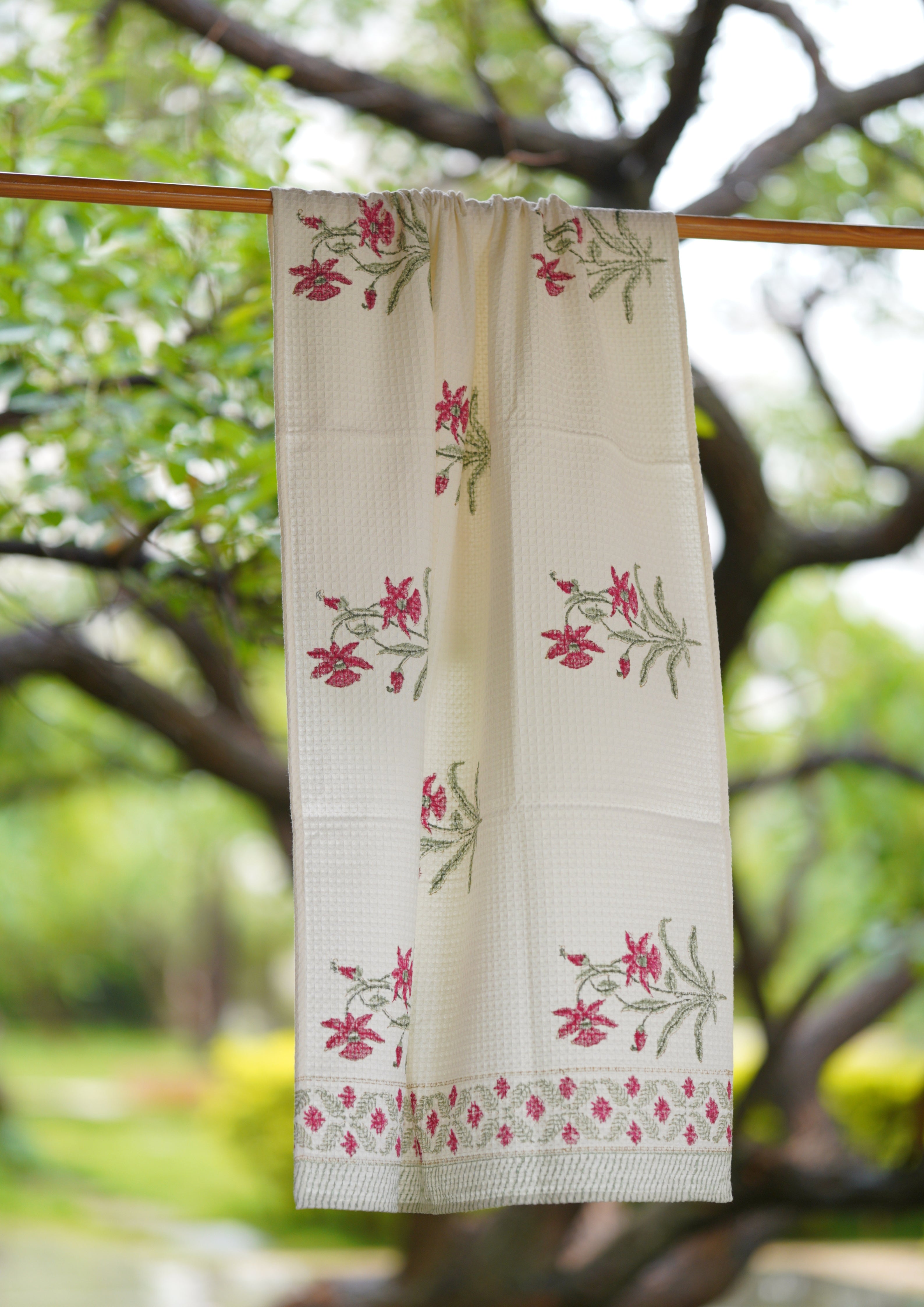 Handblock printed Waffle fabric towels. A beautiful collection of very soft handblock printed towels made in Jaipur, Rajasthan distinguished by unique handblock printed motifs. These towels are perfect for a subtle bathroom decor.