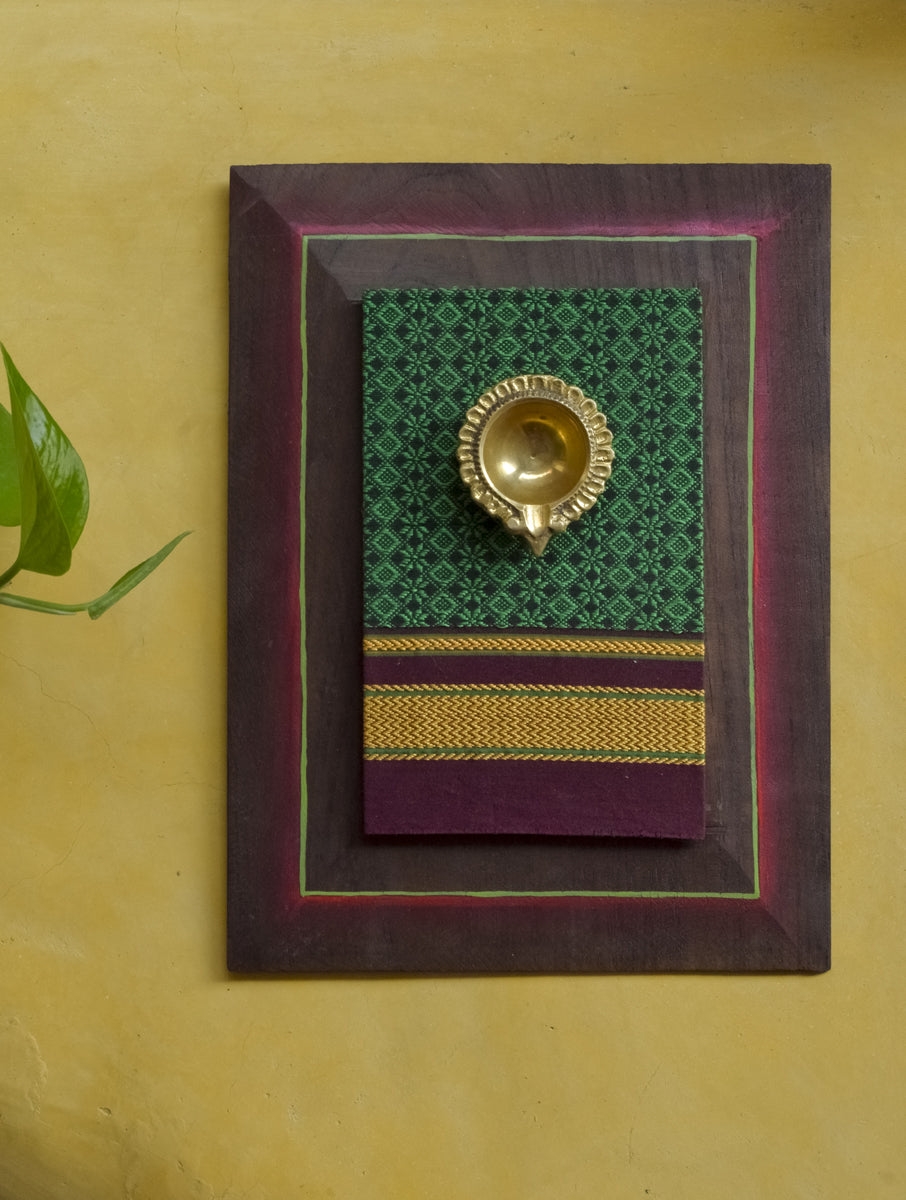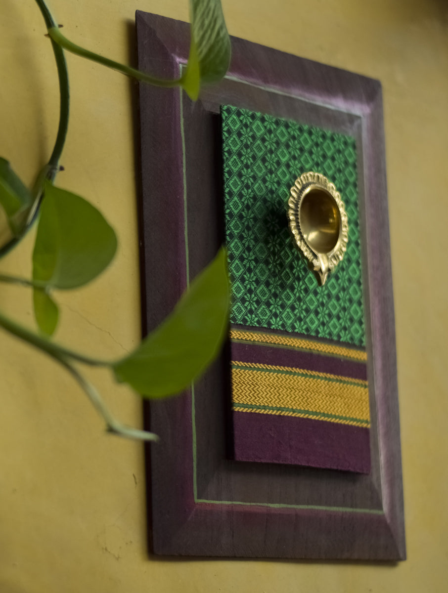 VINTAGE GREEN KHUN BRASS DIYA WOODEN FRAME