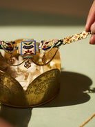 Reverence to the universal power is an essential to enhance the tranquility of mind. The TICP Candle Stand with stand is bejewelled with intricate nakshi patterns, that brings out the golds of brass. As an addition to the personal space or as a memorable souvenir, this Candle will light up your lives with its modest elegance