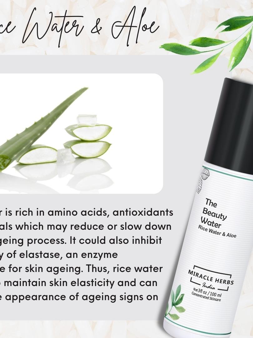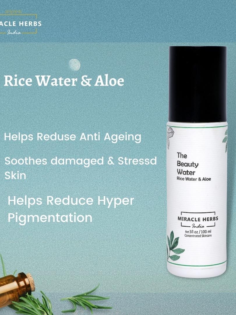 Deep cleanse the last traces of impurity on your face with this Rice Water and Aloe - Alcohol Free Face Toner by Miracle Herbs India. It is suited for all skin types. It contains rice water and aloe vera extracts. Rice water is an antioxidant that helps reduce anti-aging and hyperpigmentation. Aloe extracts to hydrate the skin, soothe the damaged and stressed skin. Its antioxidants, enzymes, Vitamin A and C are highly anti-inflammatory that can treat acne and dry skin.