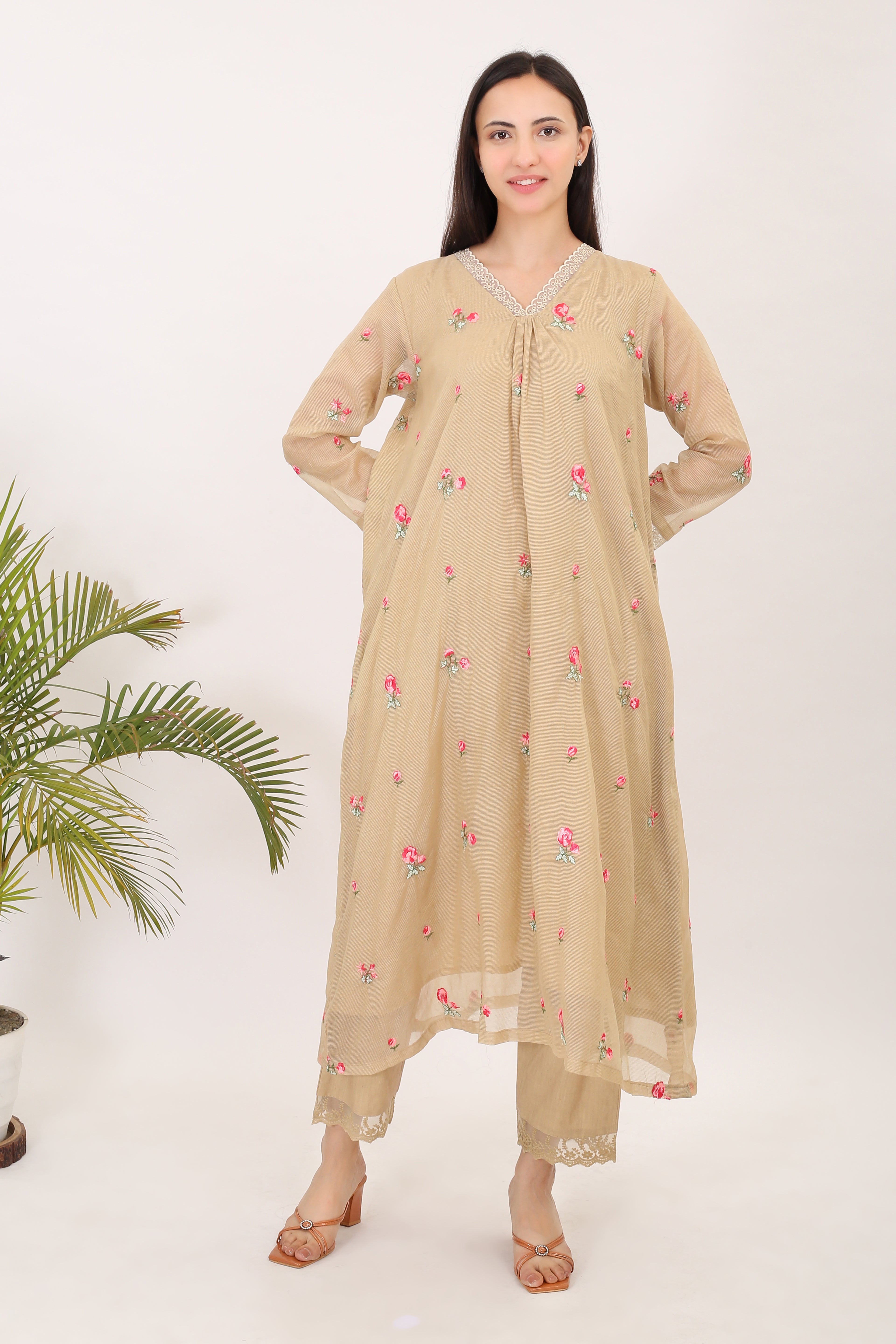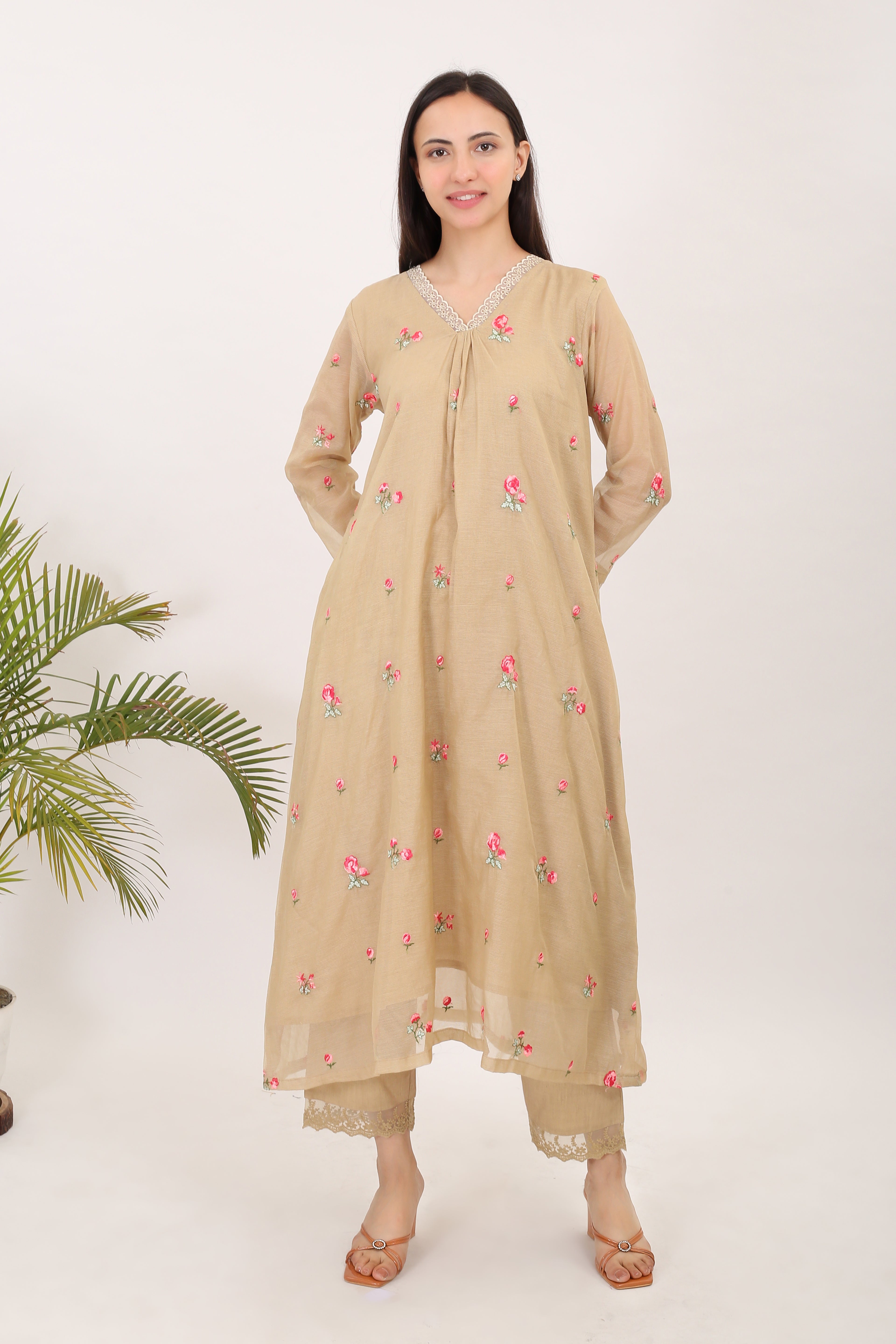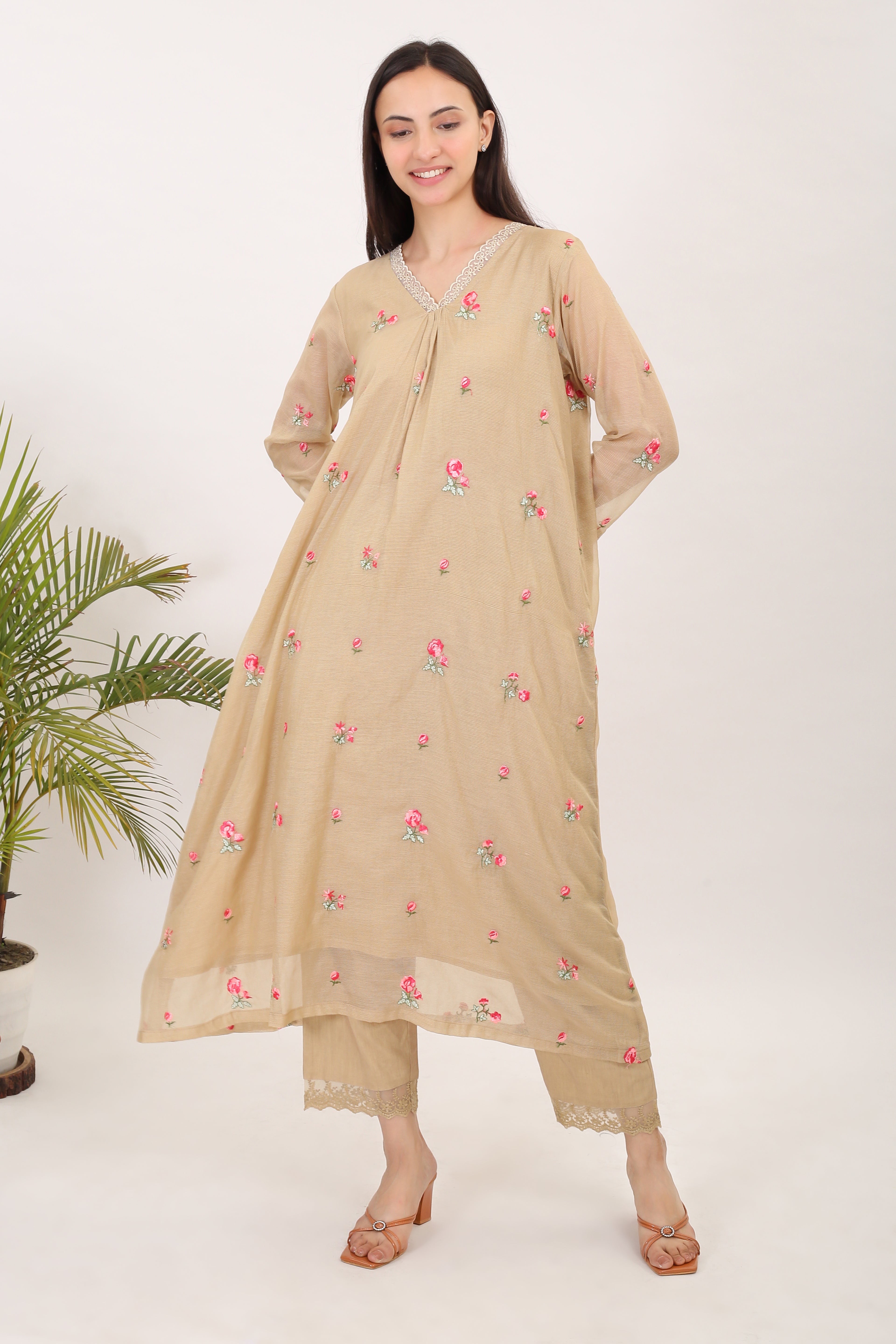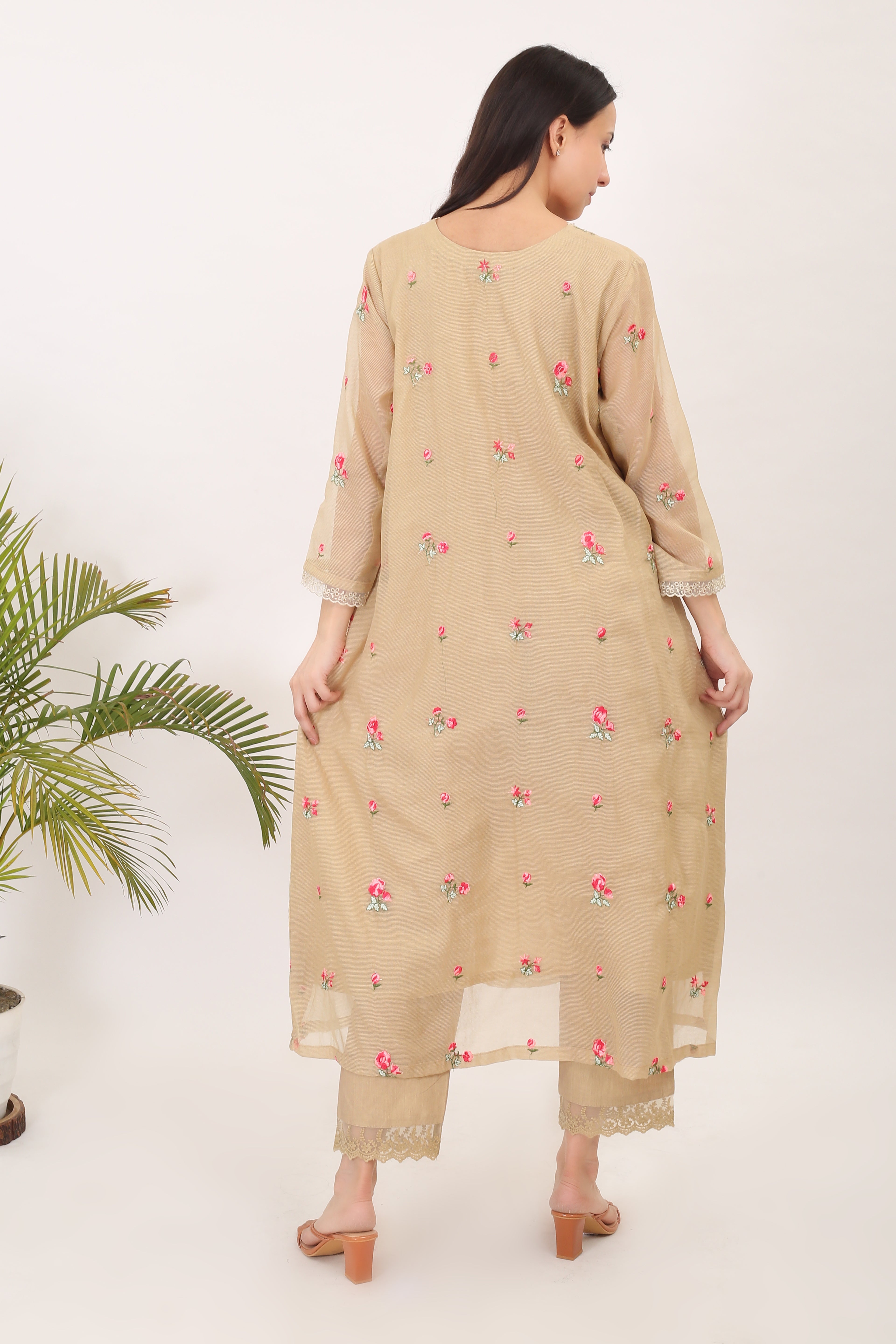 THE BEIGE BLOSSOMS: Kota doria embroidered women kurta set