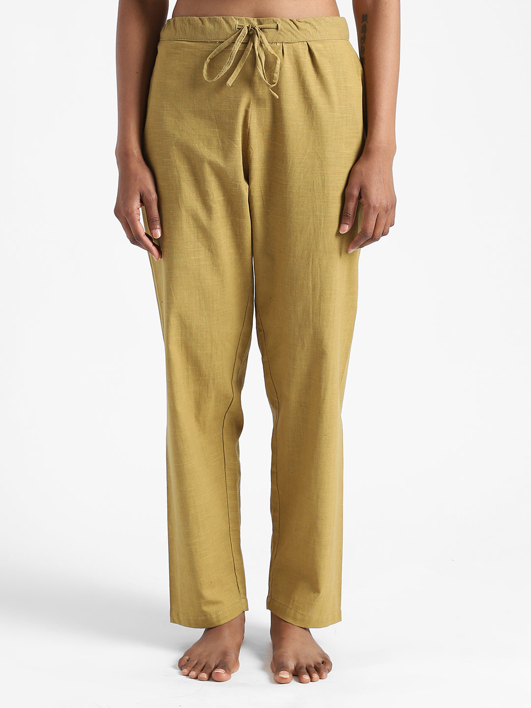 Organic Cotton & Naturally Dyed Hand Spun & Hand Woven Womens Henna Green Pants