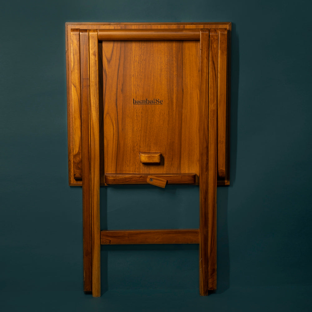 Introducing the Vanilla Beige Folding Coffee Table, a compact and stylish addition to your living space. This teak wood table offers both convenience and elegance.