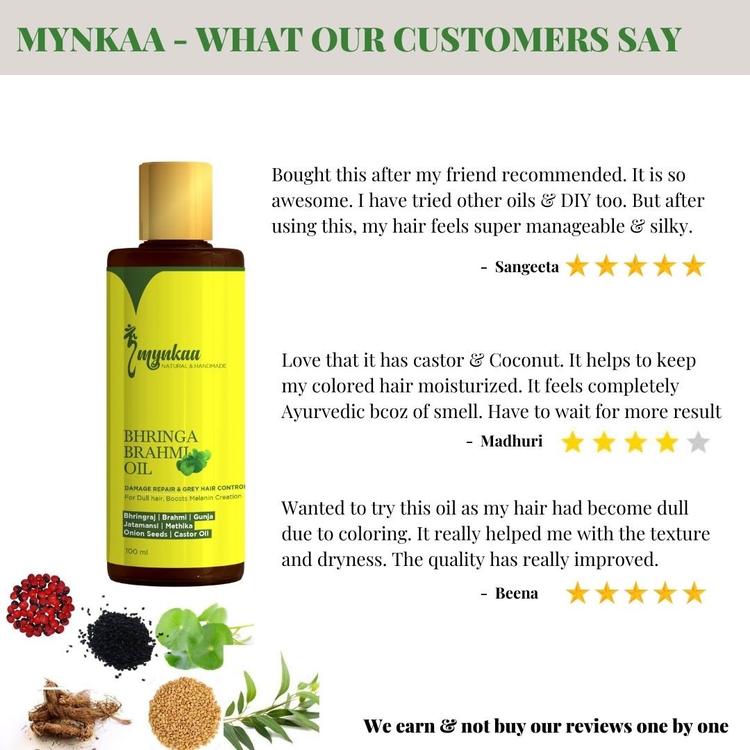 Our Bhringa: Brahmi is your solution. Made with Cold Pressed Castor and Coconut Oil & Natural Herbs- Ultimate Hair Care For -DAMAGED HAIR, SPLIT ENDS, GREY HAIR, HAIRFALL CONTROL WITHIN 3 MONTHS OF REGULAR USE