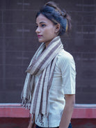 Thigh reeled katia silk and hand spun cotton woven in fishnet weave.