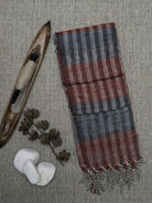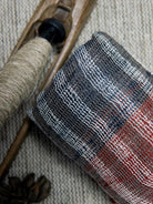 Thigh reeled katia silk and hand spun cotton woven in fishnet weave.