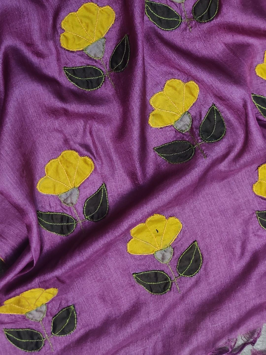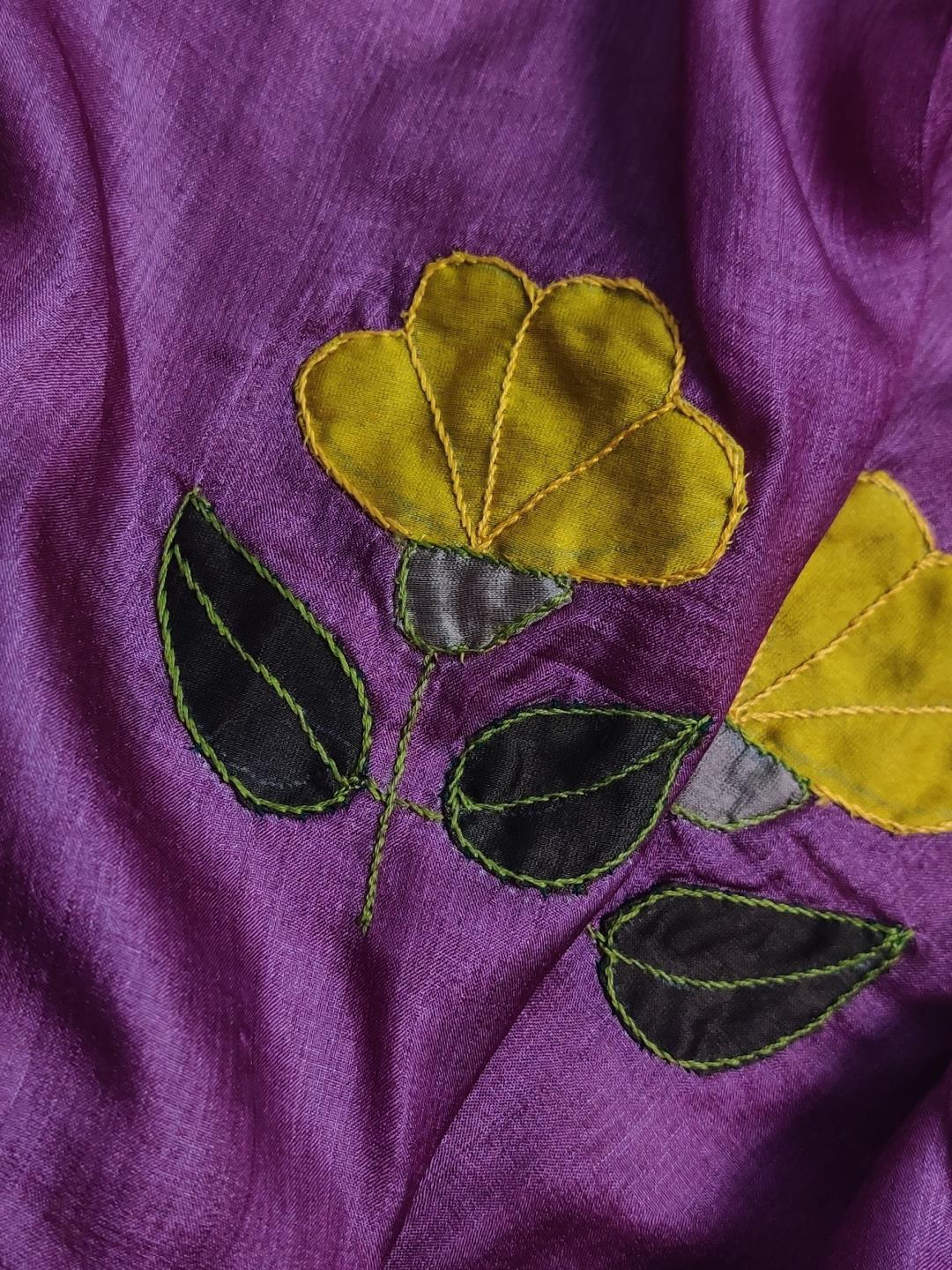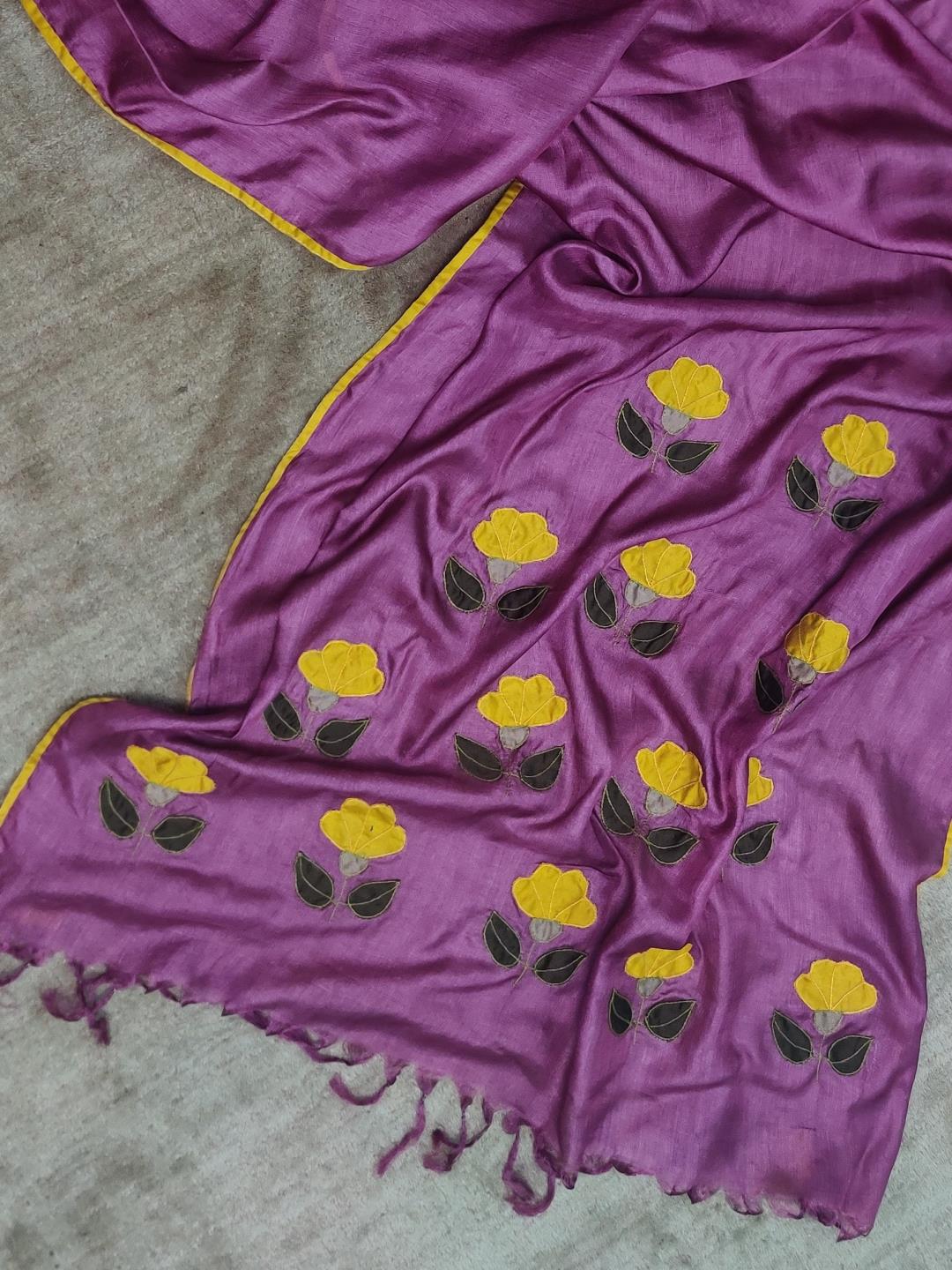 Pure handmade silk fabric with hand applique motifs on dupatta palla.