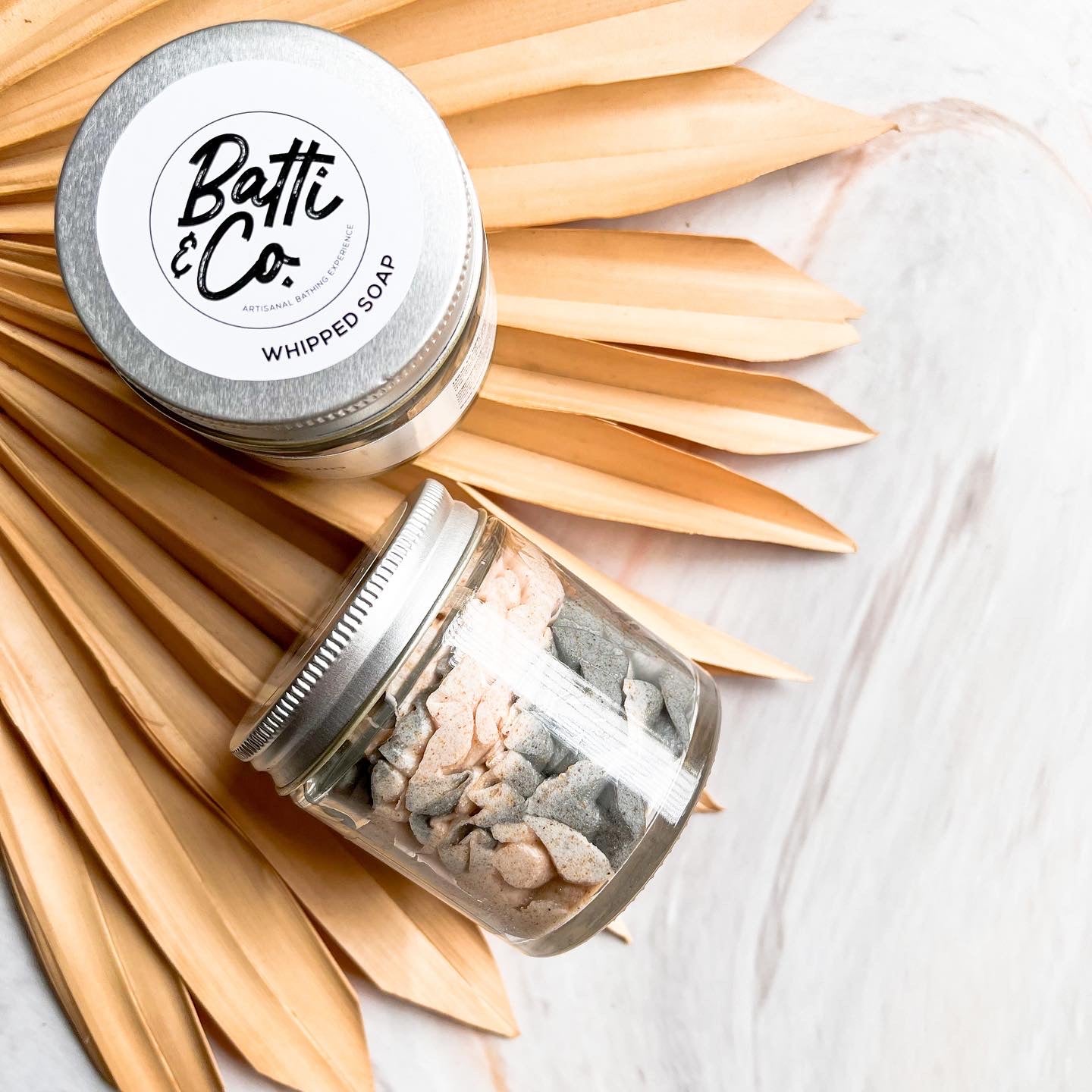 Scoop out a desired amount of whipped body scrub in your palm.