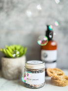 Walnut Shell Powder, Activated Charcoal, Rose Clay, Almond Oil, Shea Butter, Aqua, Glycerin, SCI, CAPB, Stearic Acid, Propylene Glycol, PhenoxyEthanol, Fragrance Oil and Essential Oil, but the secret ingredient is always love.