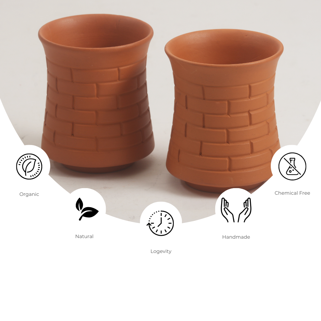 Handmade Terracotta Glass for Drinking Water, Lassi, Set of 2